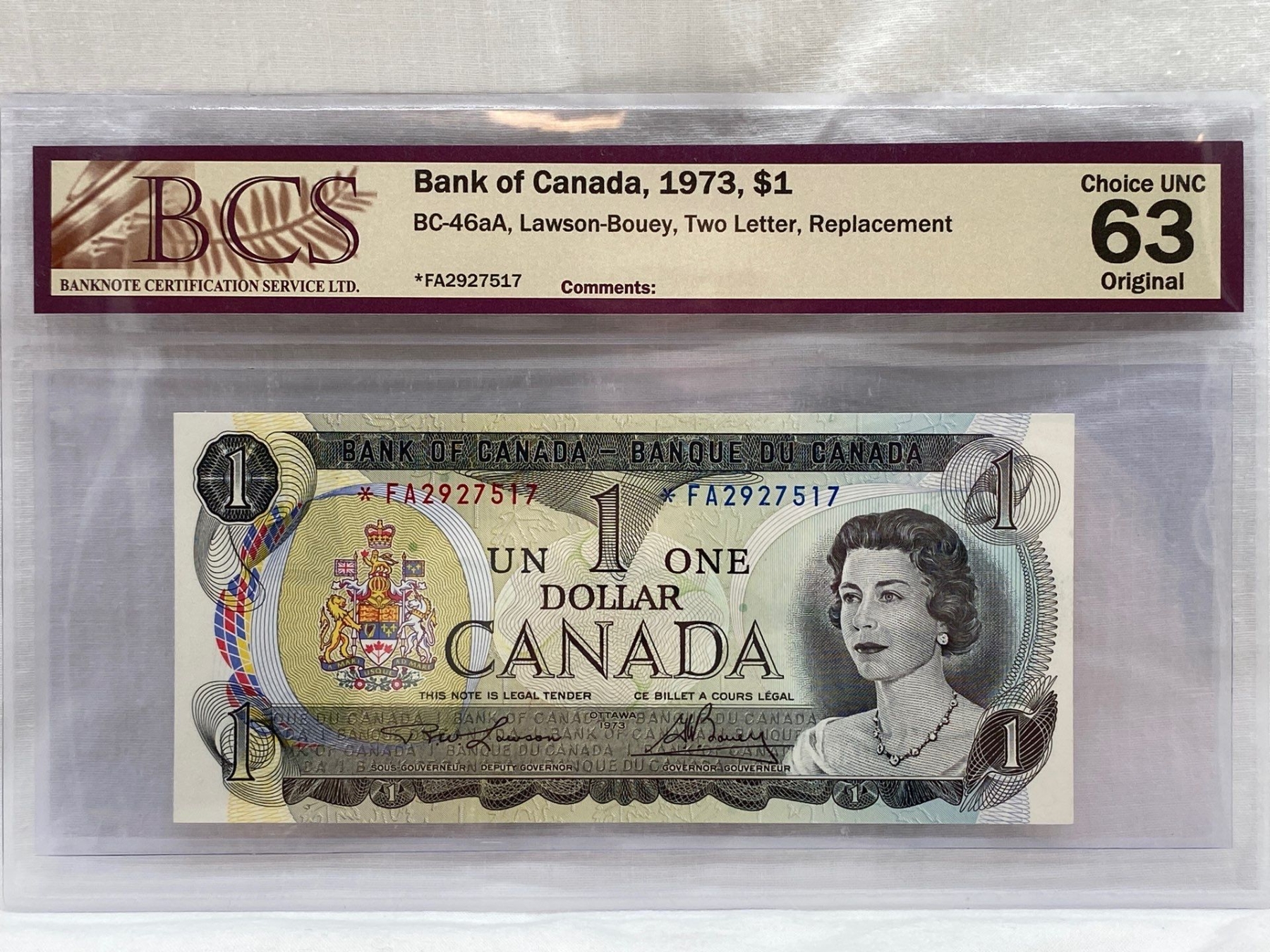 Graded Canadian 1973 $1 Choice UNC Prefix: *FA