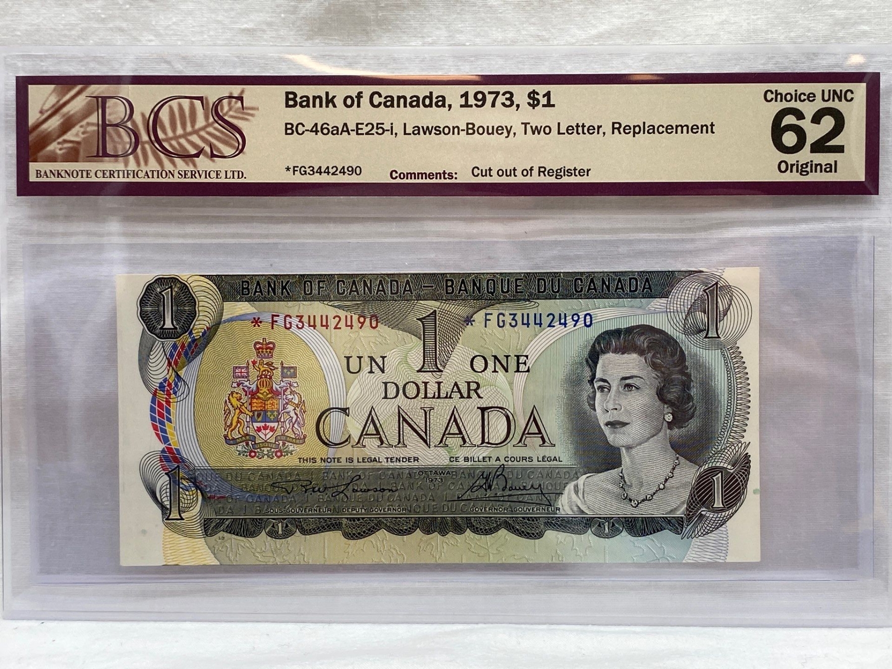 Graded Canadian 1973 $1 Choice UNC Prefix: *FG