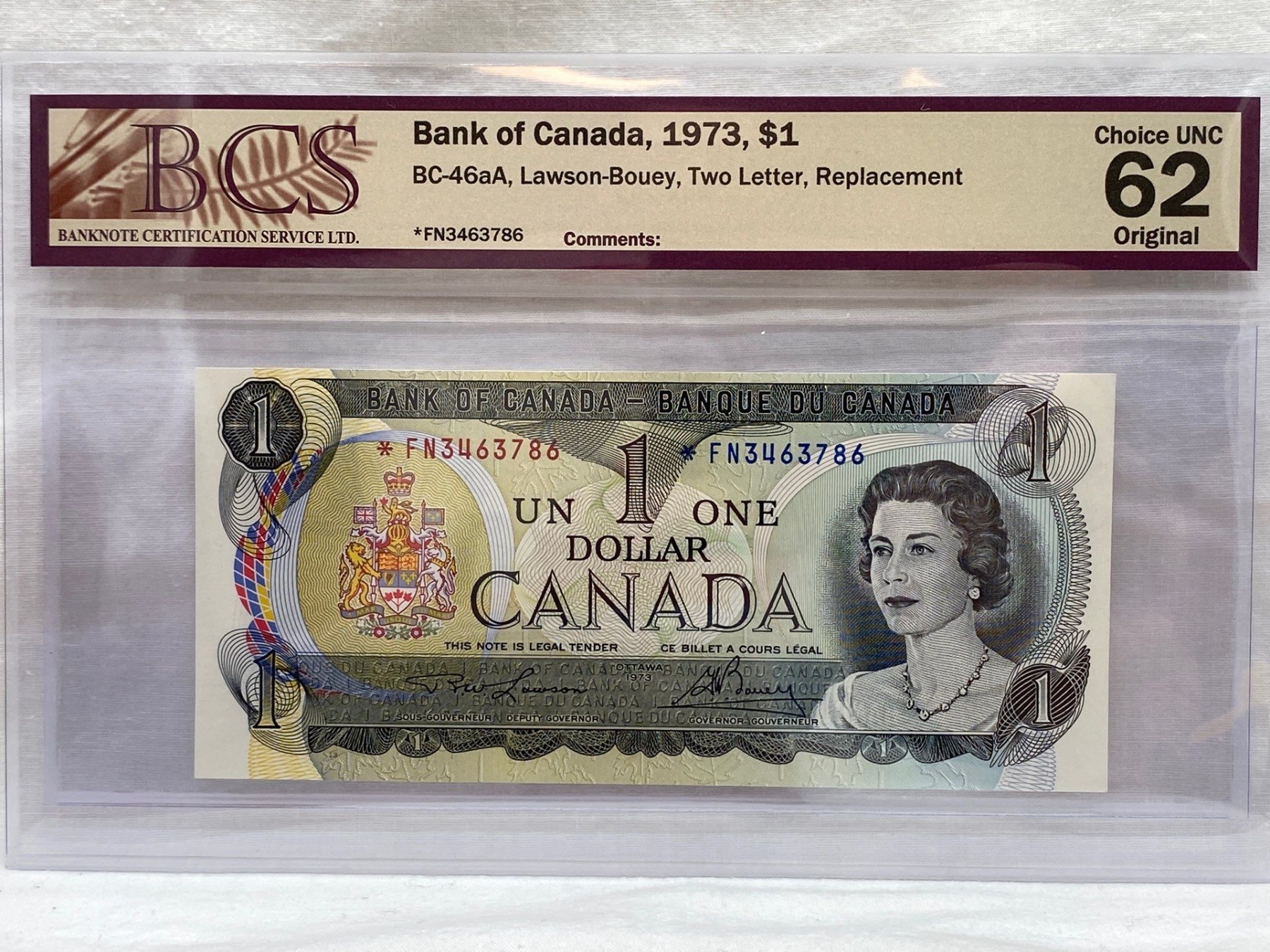 Graded Canadian 1973 $1 Choice UNC Prefix: *FN
