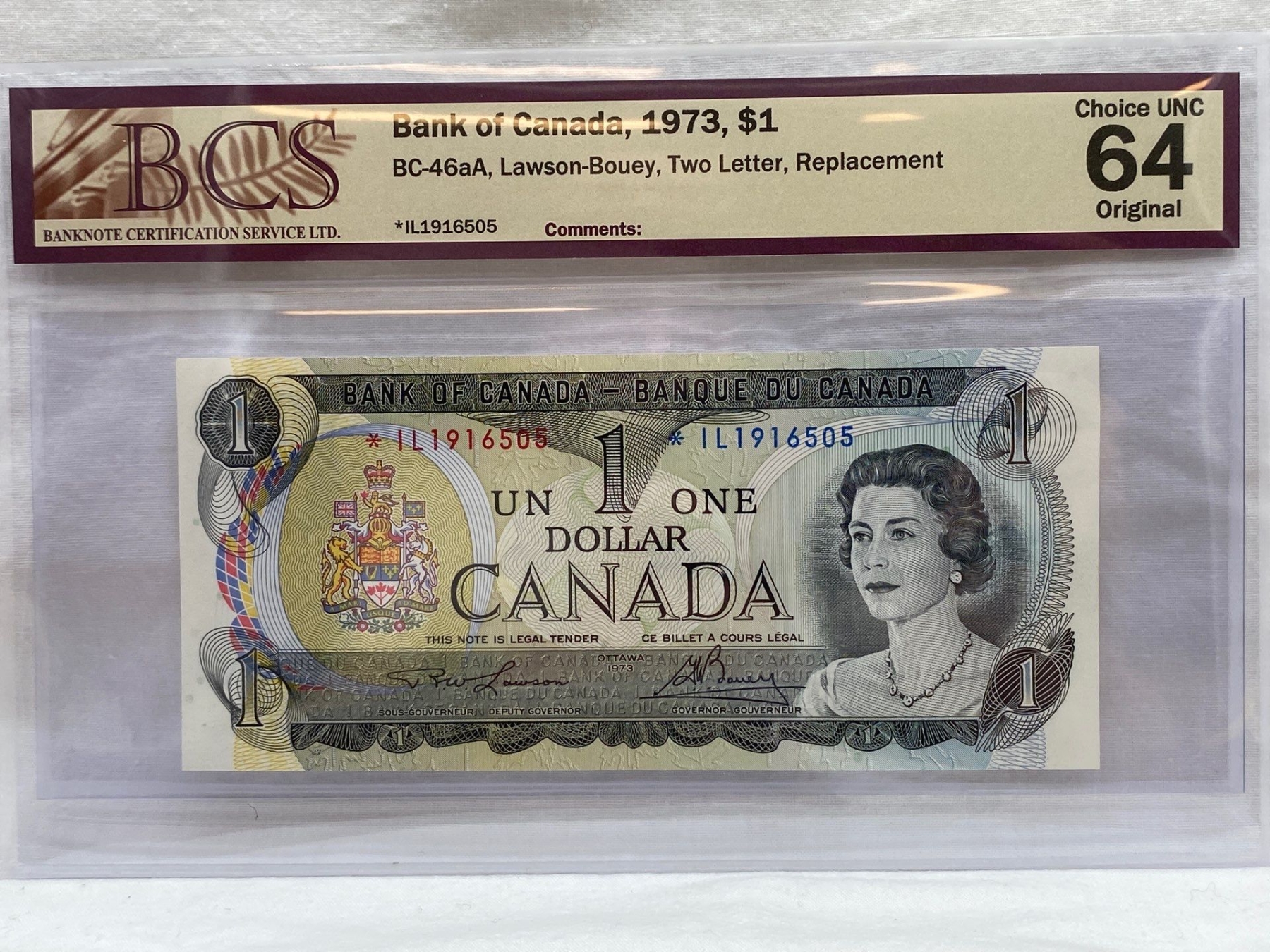 Graded Canadian 1973 $1 Choice UNC Prefix: *IL