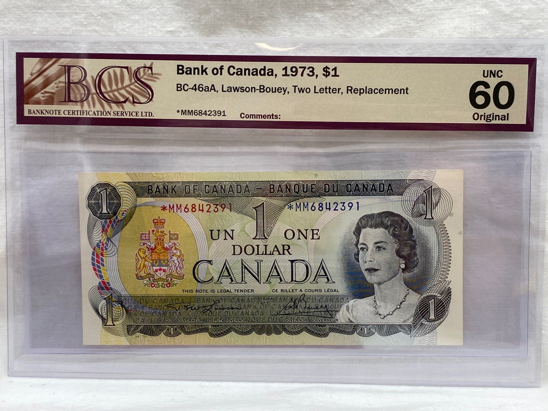 Graded Canadian 1973 $1 UNC Prefix: *MM