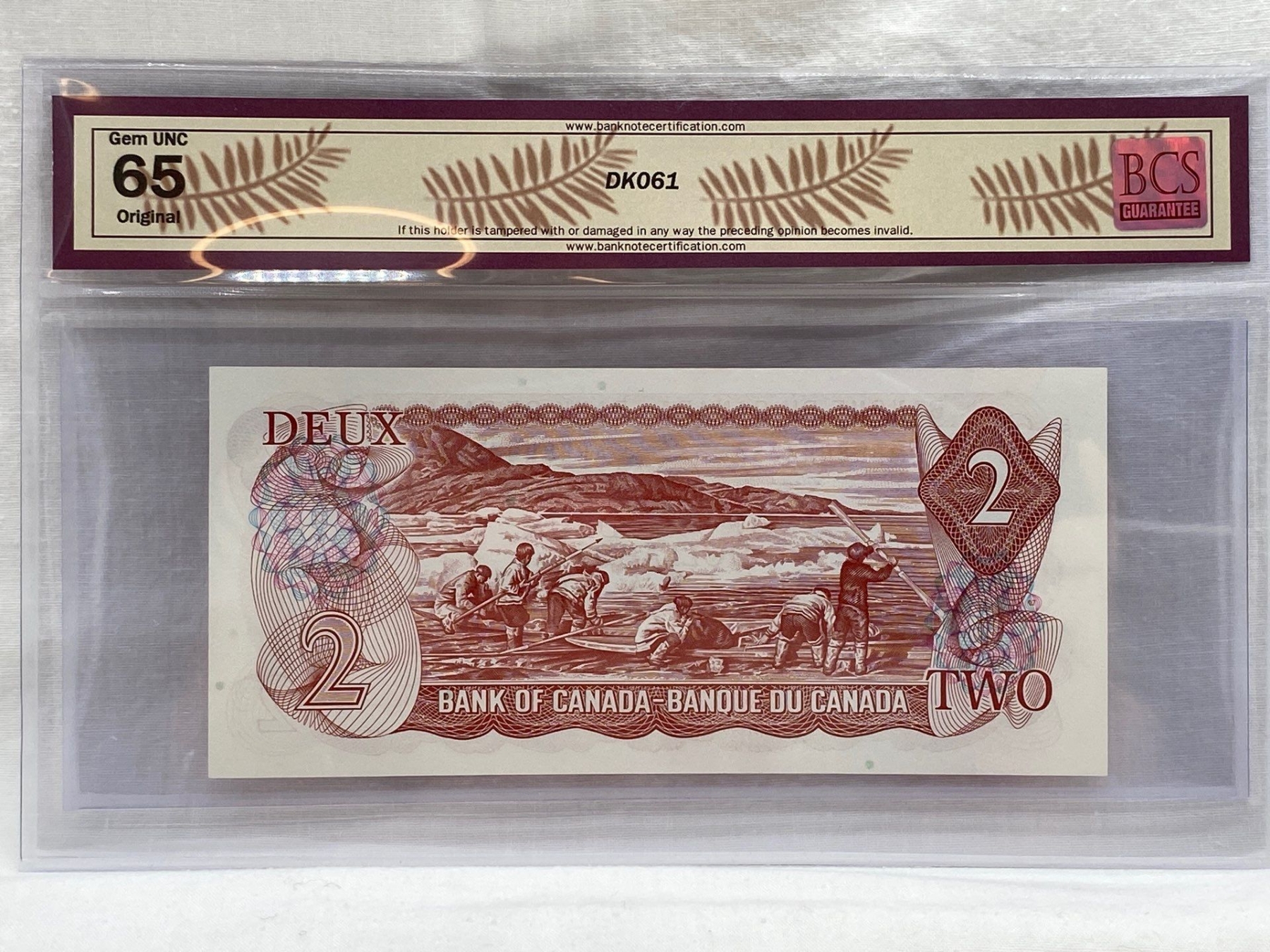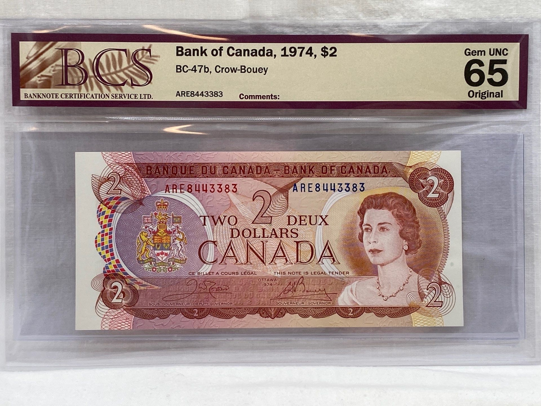 Graded Canadian 1974 $2 Gem UNC Prefix: ARE