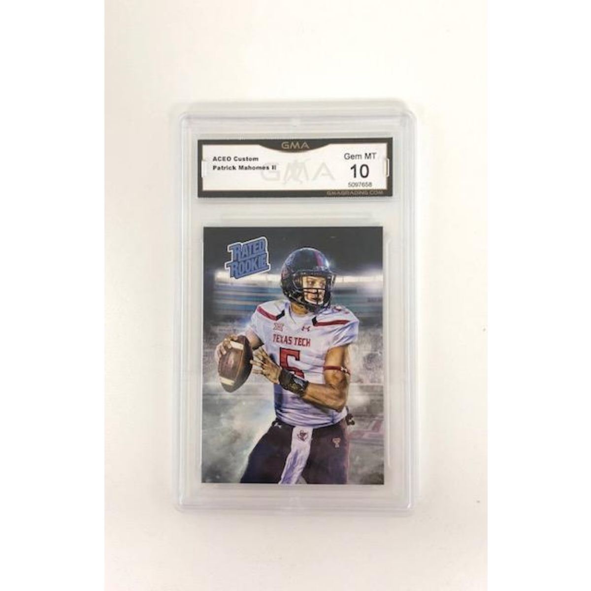 A GMA Graded 10 GEM MINT ACEO Custom Patrick Mahomes II Texas Tech Football Card. Please View Photos For Further Details.