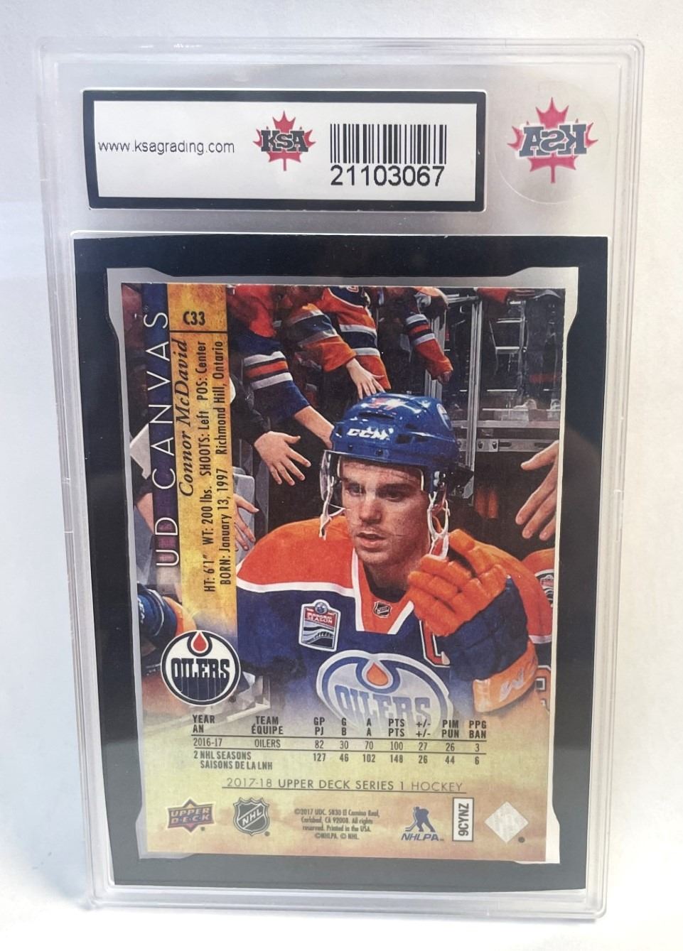 Graded GEM MINT 10 , 2017-18 Upper Deck Canvas Connor McDavid Edmonton Oilers # C-33