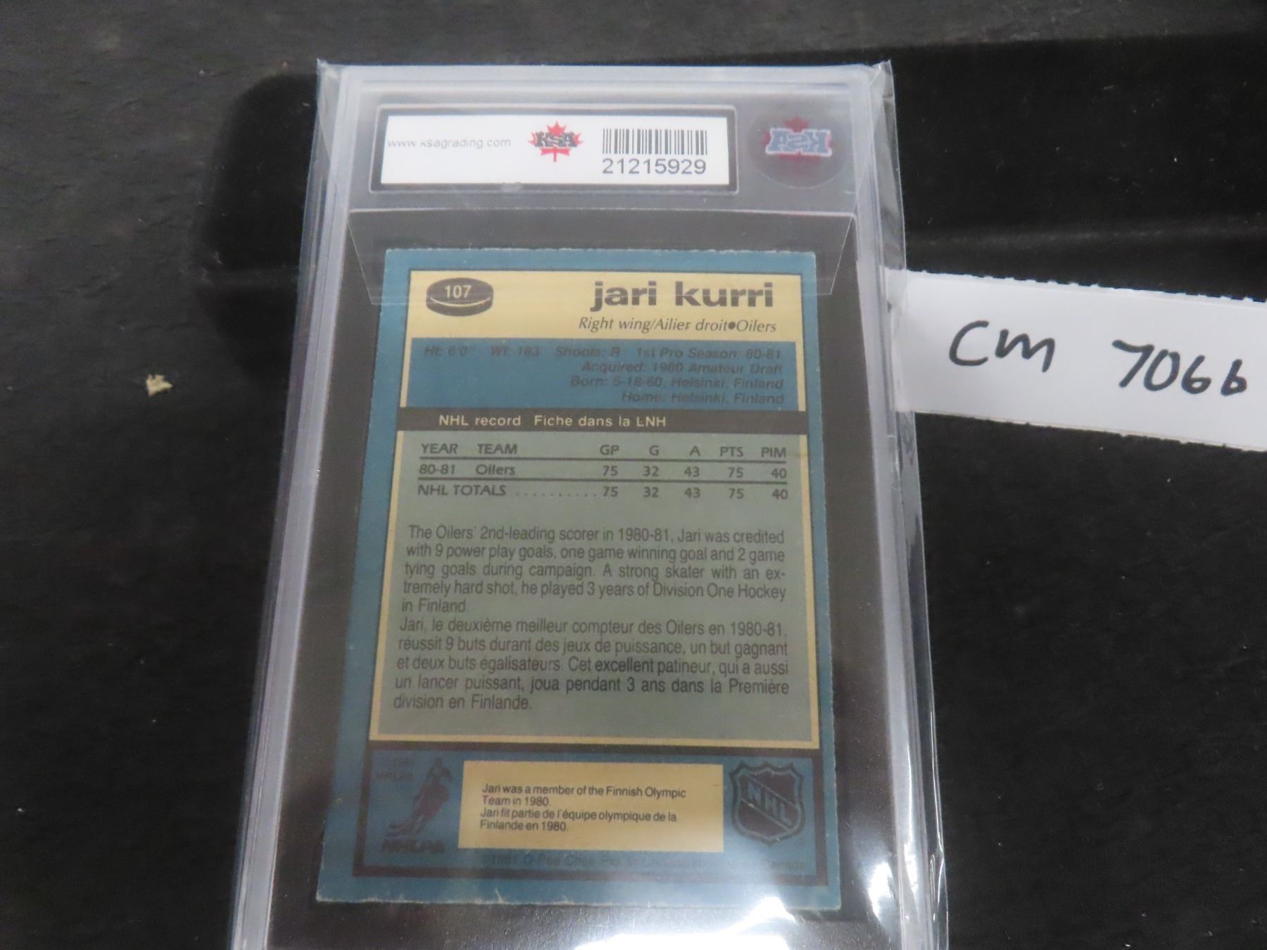 Graded Jari Kurri Rookie Card