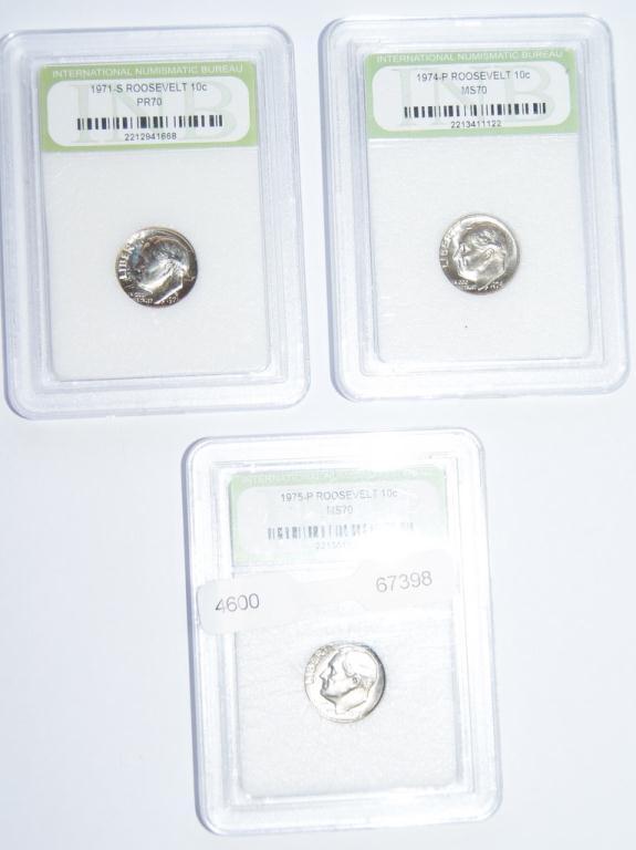 1971-S INB PR70, 1974-P INB MS70 and 1975-P INB MS70 3 TIMES THE AMOUNT YOU BID