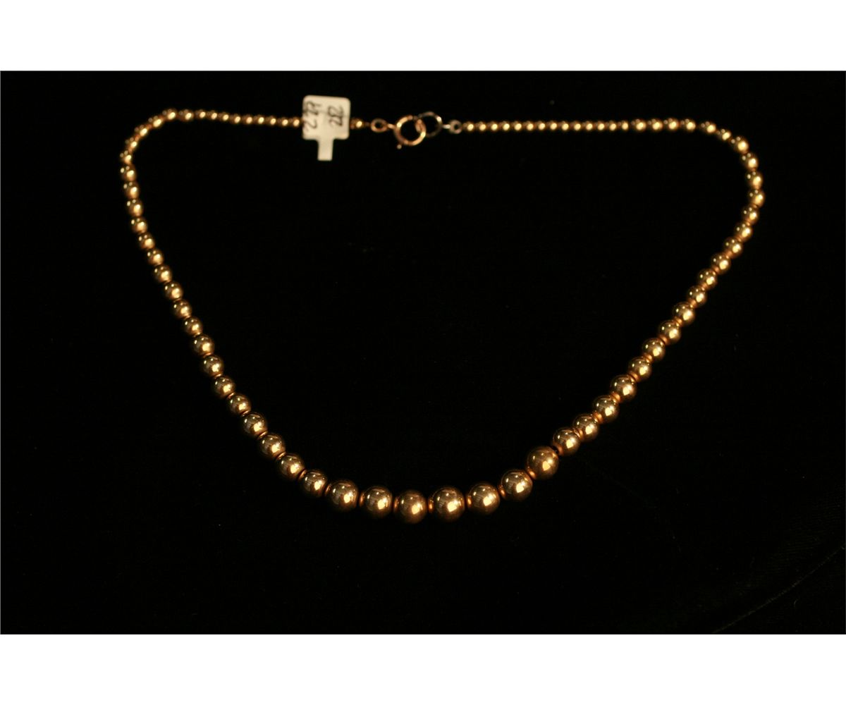 Graduated Gold Bead Necklace, Marked 14k, Ranging from 3mm - 8mm, diameter beads, Weight 17.5 grams, -227282-
