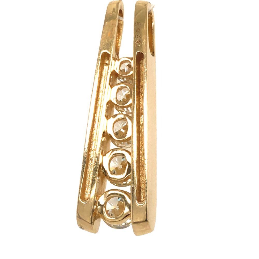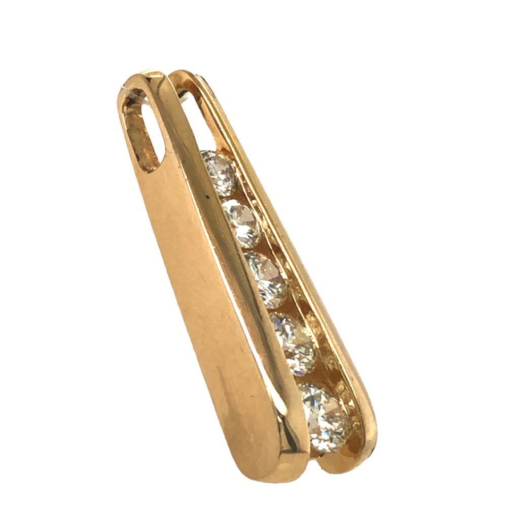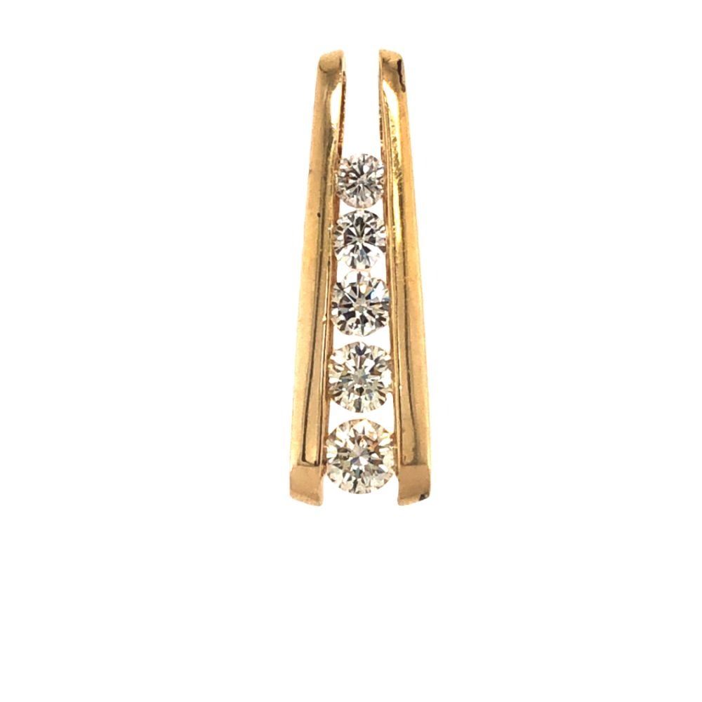 ADDITIONAL INFORMATION:& nbsp; This yellow gold pendant is well-crafted with smooth-polished sidewalls that are approximately 2.25mm thick and taper from 4mm to 6mm wide.& nbsp; The sparkling diamonds are channel-set between these sidewalls and the front of the pendant tapers from approximately 5.5mm wide to 8.25mm.& nbsp; The openings for the chain are approximately 2.5mm.& nbsp;& nbsp;