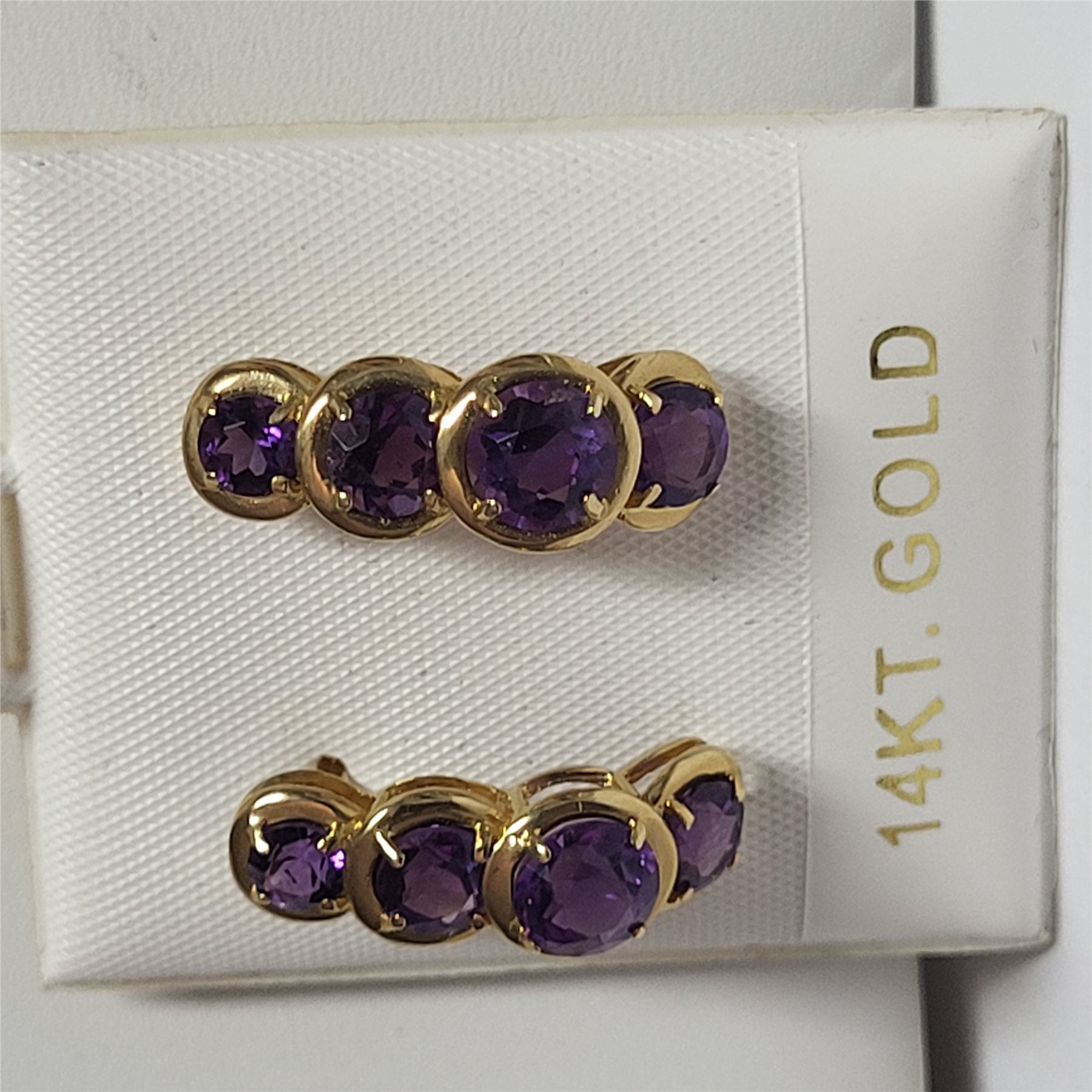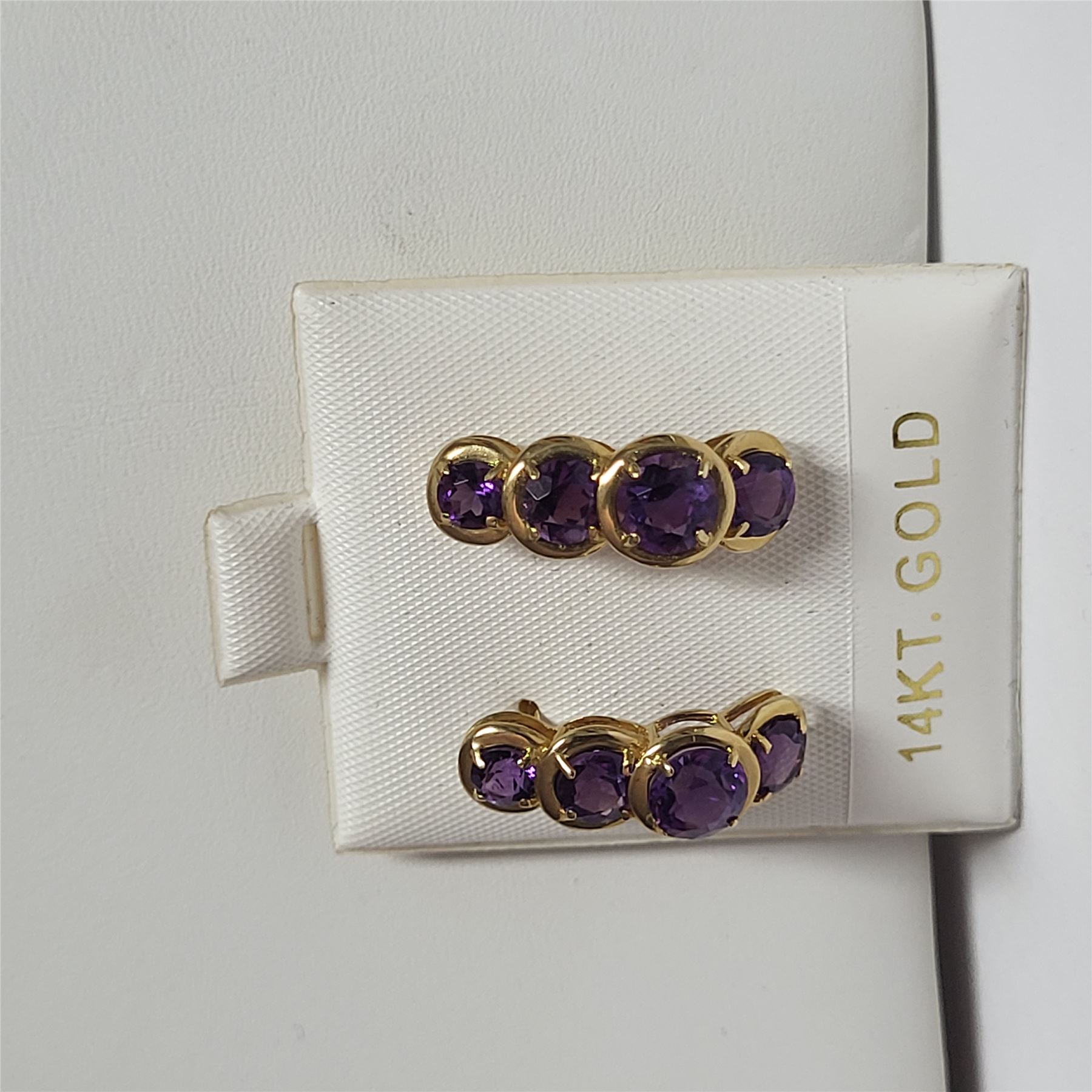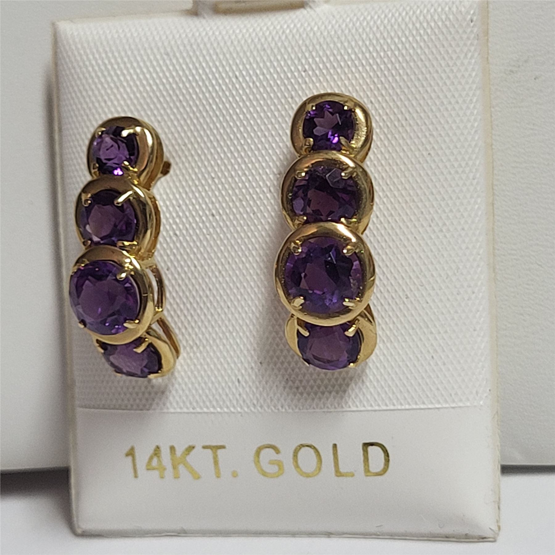 14KY Round, faceted genuine amethysts& nbsp; Appx 7/8& quot; long posts and friction backs& nbsp; prong-set