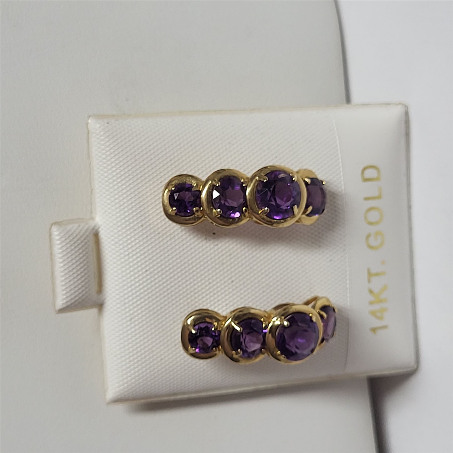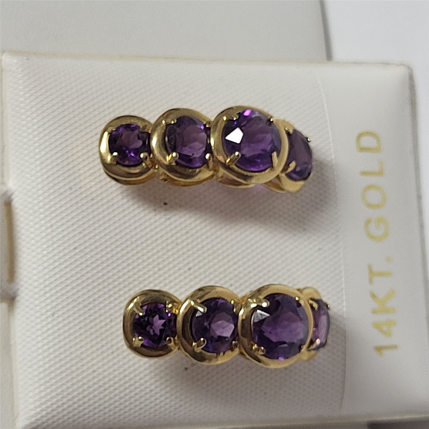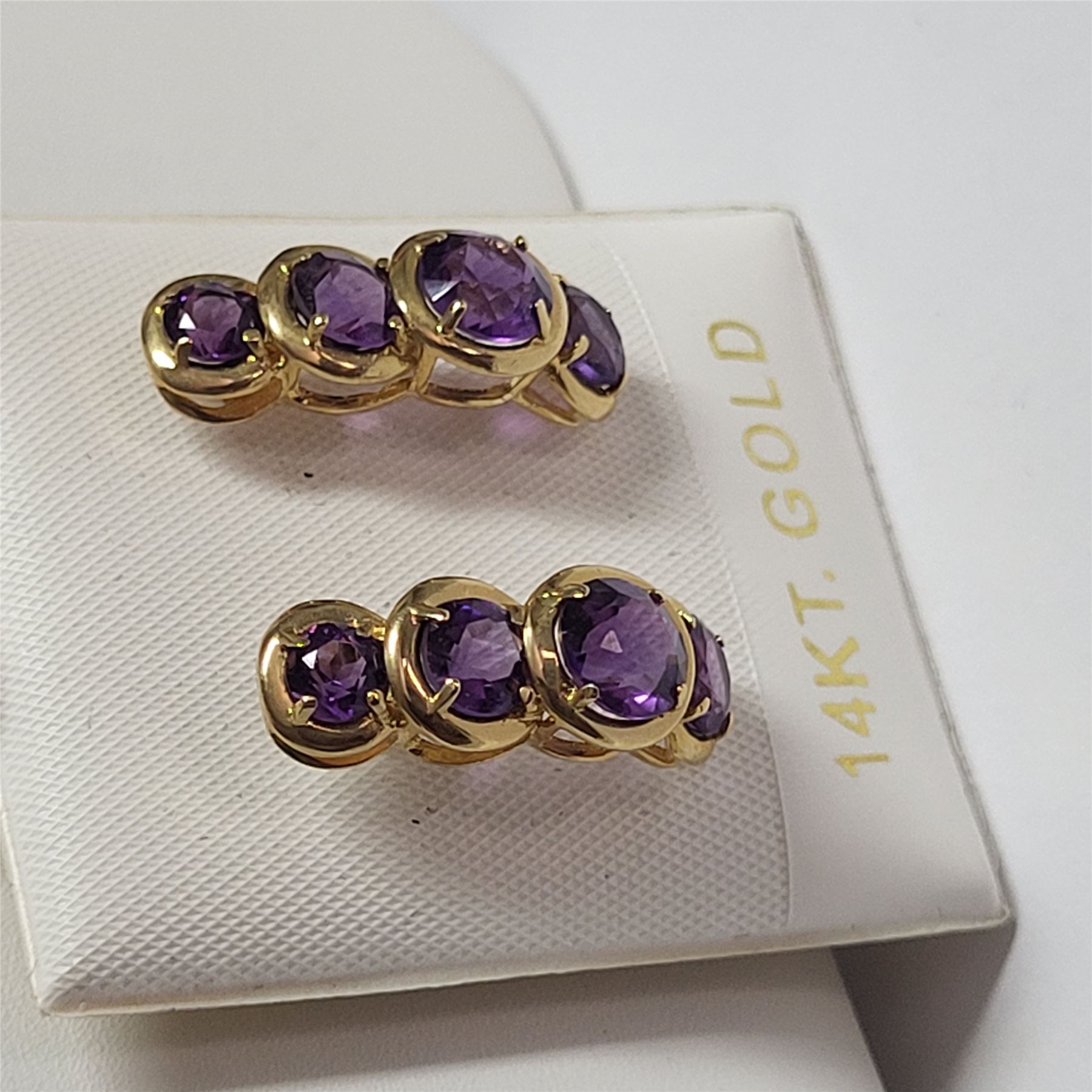 14KY Round, faceted genuine amethysts& nbsp; Appx 7/8& quot; long posts and friction backs& nbsp; prong-set