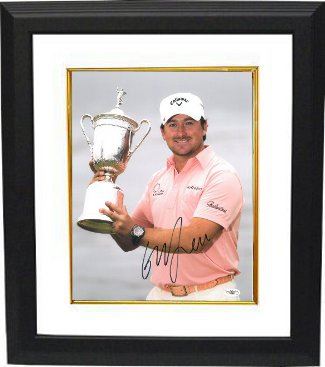 Graeme McDowell is a professional golfer from Northern Ireland who plays on both the PGA Tour and European Tour. He is well known for winning the 2010 U.S. Open at Pebble Beach, where he ended a 40-year drought for Europeans at the tournament. McDowell has won nine events on the European Tour, and two on the PGA Tour. He has also represented Ireland at the World Cup and been a member of the European Ryder Cup team on three occasions. He has appeared in the top-10 in the Official World Golf Ranking and his best ranking position is 4th. Graeme McDowell has hand signed this 11x14 Photo from the 2010 US Open. JSA Hologram and Certificate of Authenticity from Athlon Sports. Custom White Mat and Premium Black Frame as shown.