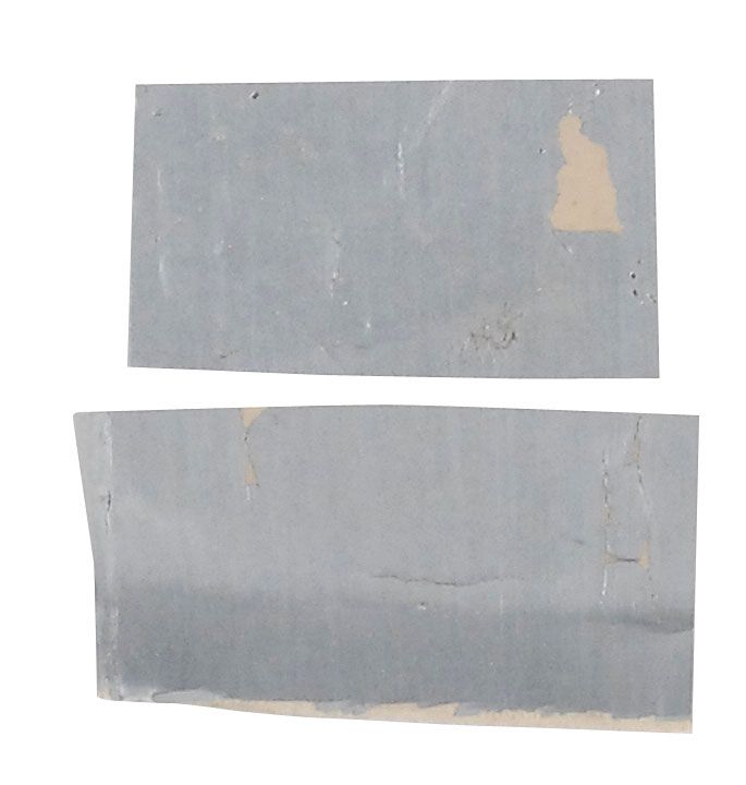 Two swatches of outer skin removed from the Graf Zeppelin airship, each measuring approximately 2.5 x 1.5. In overall fine condition, with general wear.