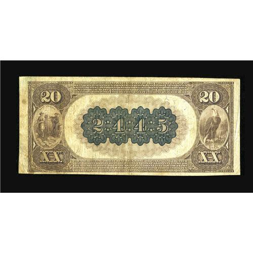 <B>Grafton, WV</B></I> - $20 1882 Brown Back Fr. 504 <B>The First NB</B></I> Ch. # (S)2445<BR>This scarce $20 Brown Back is an old friend, having last appeared in our May, 2001 auction, where it sold for $907.50. It remains the only $20 Brown Back known from here. In today's more advanced market for rare Nationals, it should do appreciably better than its last outing. <B>Fine.</B></I><BR><I>From The Bill and Kathy Stella Currency Collection</B></I><BR><BR><b>Shipping:</b> Coin/Currency (<a target="_blank" href="http://www.heritageauctions.com/common/shipping.php">view shipping information</a>)