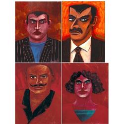 Three of the four measure 18 by 14 inches each; the final work measures 14 by 10 inches.