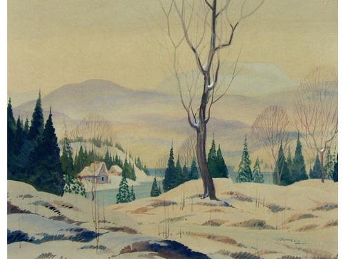[Canadian OSA 1901-1967] UNTITLED (WINTER LANDSCAPE) Watercolour on paper 15.25 x 19.75 ins. Signed