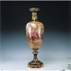 Gran jarrón en cerámica en el estilo de Sèvres, con escena pintada representando el triunfo de Juana