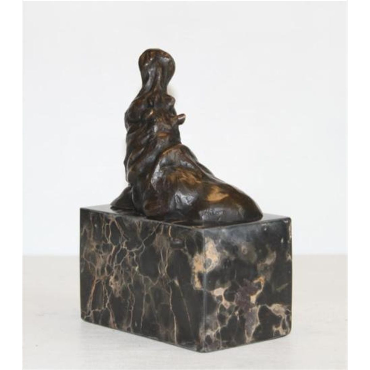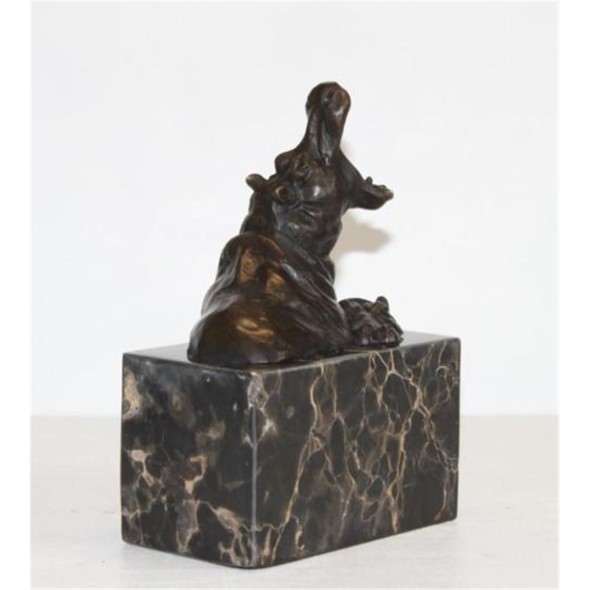Grand Hippos, Bronze Sculpture, 7 1/2"H x 3"D x 5"W 6 lbs. This bronze sculpture was produced using the Lost Wax casting method. The Lost Wax Cast method is the most precise metal casting technique in existence, ensuring exquisite detail of the original host model which is usually sculpted in clay or wax. This Lost Wax casting method is an extremely labor intensive and expensive process, but the end results produce a Heirloom Quality Masterpiece!