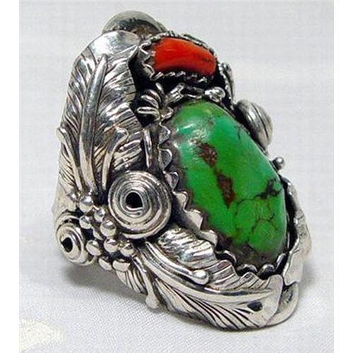 Size 9.5 and 24 grams of pure luxury. Coral and Turquoise all framed in Sterling. The ring has a height of 40mm or approximately 1.58 inch.
