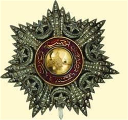 Grand Officer's Breast Star (2nd class); breast star of small size, diam.: ca. 75 mm, silver brilliant cut, medallion gold resp. gilt and partially enamelled; official mark, hallmarks and zigzag line on reverse, thin pin and two side hooks. Very fine old quality with small signs of wearing.