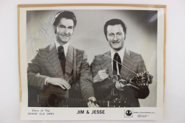 Stars of the Grand Ole Opry Jim & Jesse McReynolds in a black and white photo. Jim and Jesse were Bluegrass legends with exceptional harmony and a unique style.