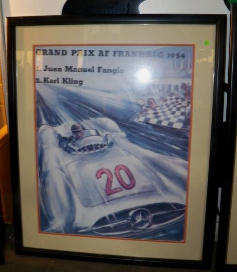 This fine art giclee is a vintage Mercedes Benz Grand Prix raicing advertising poster by H. Liskars. Approx Frame Size 32" x 39"