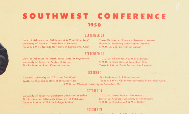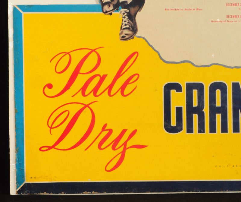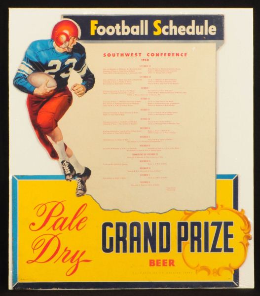 Houston, Texas Brewery. 1950 SWC Football advertising diecut cardboard sign. Measures 31" x 28"