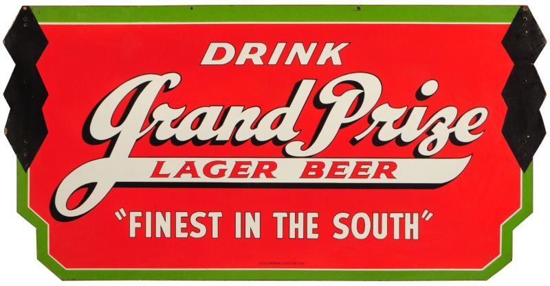 Grand Prize Lager Beer Sign "Finest in the South". Measures 30.5" x 60".