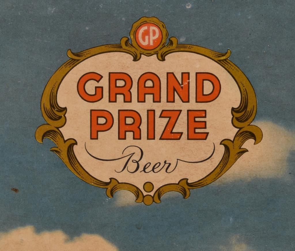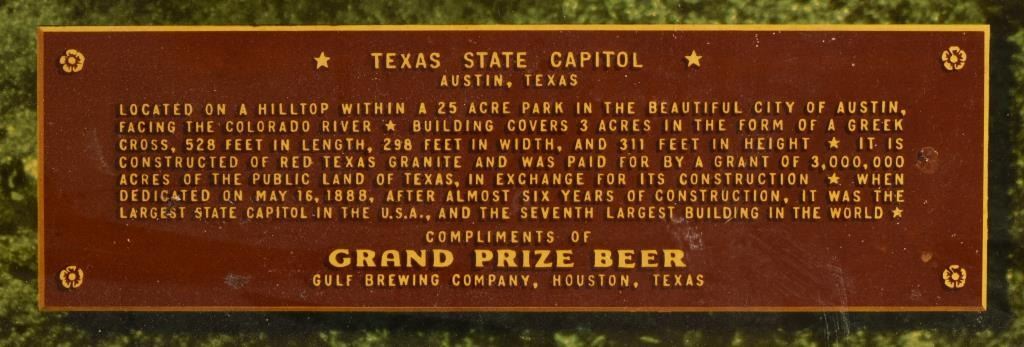Framed Grand Prize Beer Texas Capitol cardboard sign , framed 46.25" x 34.5"