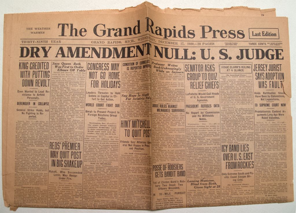"With hundreds of men and a few women at the scene of the latest Nevada gold strike 38 miles north of Lovelock in the Rabbit Hole district…" Also news about a United States District Judge that says the 18th Amendment is unconstitutional!