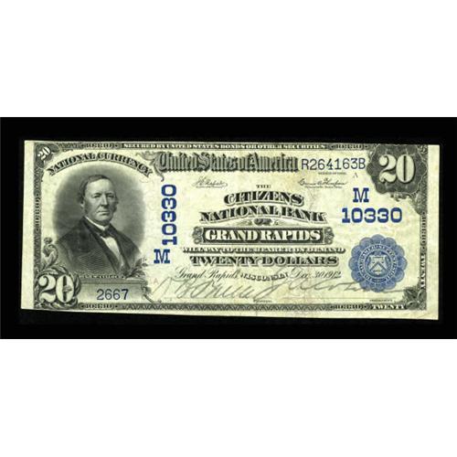 <B>Grand Rapids, WI</B></I> - $20 1902 Plain Back Fr. 655 <B>The Citizens NB</B></I> Ch. # (M)10330<BR> A second nice large example, this also from the 1980 Kurt Krueger Numismatists of Wisconsin sale. <B>Very Fine.</B></I><BR><BR><b>Shipping:</b> Coins & Currency (<a target="_blank" href="http://www.heritageauctions.com/common/shipping.php">view shipping information</a>)