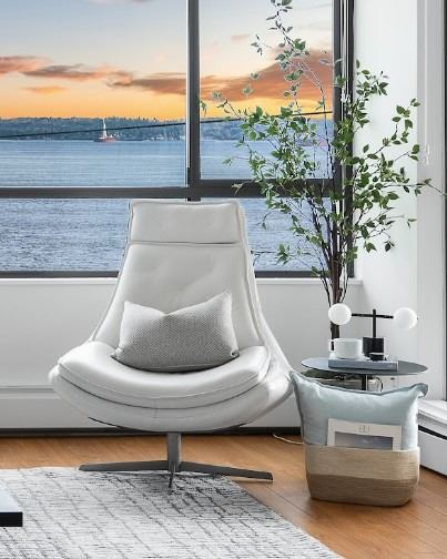 Grand White Leather Swivel Chair - RV: $2900