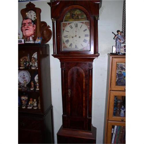 THIS WAS LEFT TO ME BY MY PARENTS. IT WAS MADE AROUND THE MID 1800'S. IT NEEDS VERY LITTLE WORK TO KEEP IT RUNNING. THE LINE THAT HOLDS THE 20 POUND WEIGHTS BROKE, ONLY ONE OF THE TWO. IT KEEPS GREAT TIME. THE HOUR AND MINUTE HANDS FELL OFF, BUT I STILL HAVE THEM, TO KEEP EVERYTHING ORIGINAL. IT KEEPS THE SECONDS ON ITS OWN SPACE, AS WELL AS EACH MONTHLY DAY. IT'S AN AWSUM CLOCK. THE BONNET IS VERY GOOD. THE WEIGHTS ARE ORIGINAL AND HEAVY. IT HAS THE ORIGINAL KEY TO WIND UP BOTH WEIGHTS. IT'S A VERY GOOD RUNNING OLD GRANDDAD CLOCK.