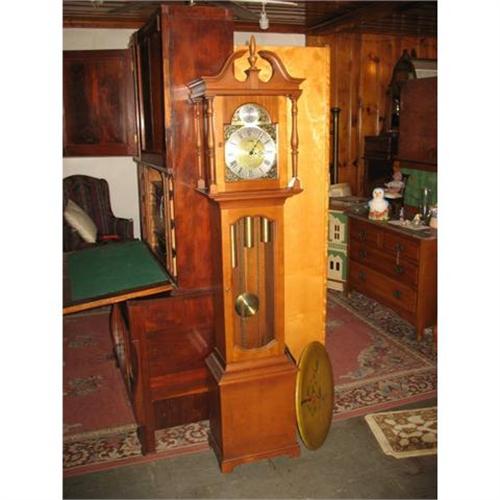 Very nice Barwick Grandmother clock in a solid maple cabinet. Worked perfectly in the estate but we do not guarantee clocks to work if they get shipped. This came from a fine Riverside Dr. estate near Atlanta. We buy entire estates and pass the savings on to our customers. Please visit our stores, Aardvark Antiques, if you get near Atlanta. Thanks for making us the best!