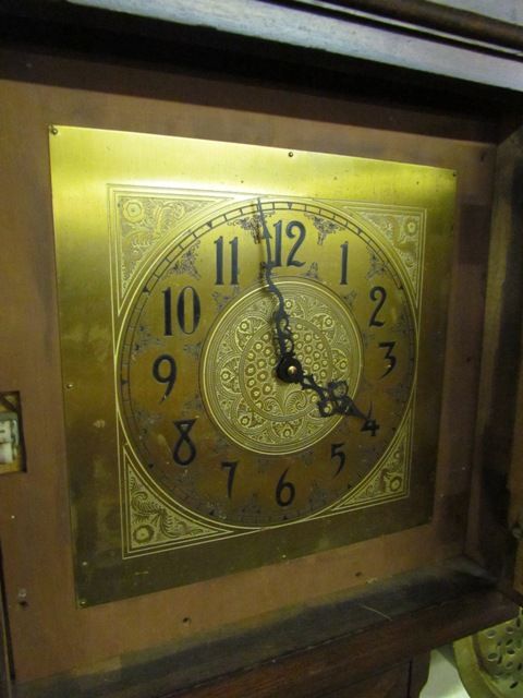 Walnut case Grandmother Clock - arch crest, brass face & weight driven 71" tall