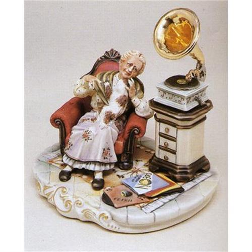 Grandmother with Gramaphone by Enzo Arzenton Size: 9" High x 9 1/4" Wide Details: Hand Painted Adorned with Fired 24 Karat Gold Paint Satisfaction Guaranteed All our capodimonte pieces are 100% authentic, made with the best craftmanship in Italy. Capodimonte is more than a century Italian style of the finest porcelain once reserved for kings and queens. The style became popular when the royal family in Italy fell in love with the beauty of Capodimonte arts. The selection you see is made by artisans, according to the same tradition dating back to the 18th Century.<BR>Free Shipping in the continental US