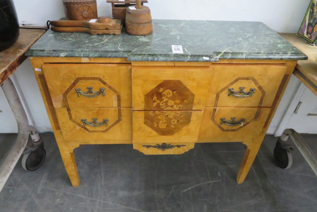 Granite Top 2 Drawer Burl Hall Table - Top Crack - Nds. Repair