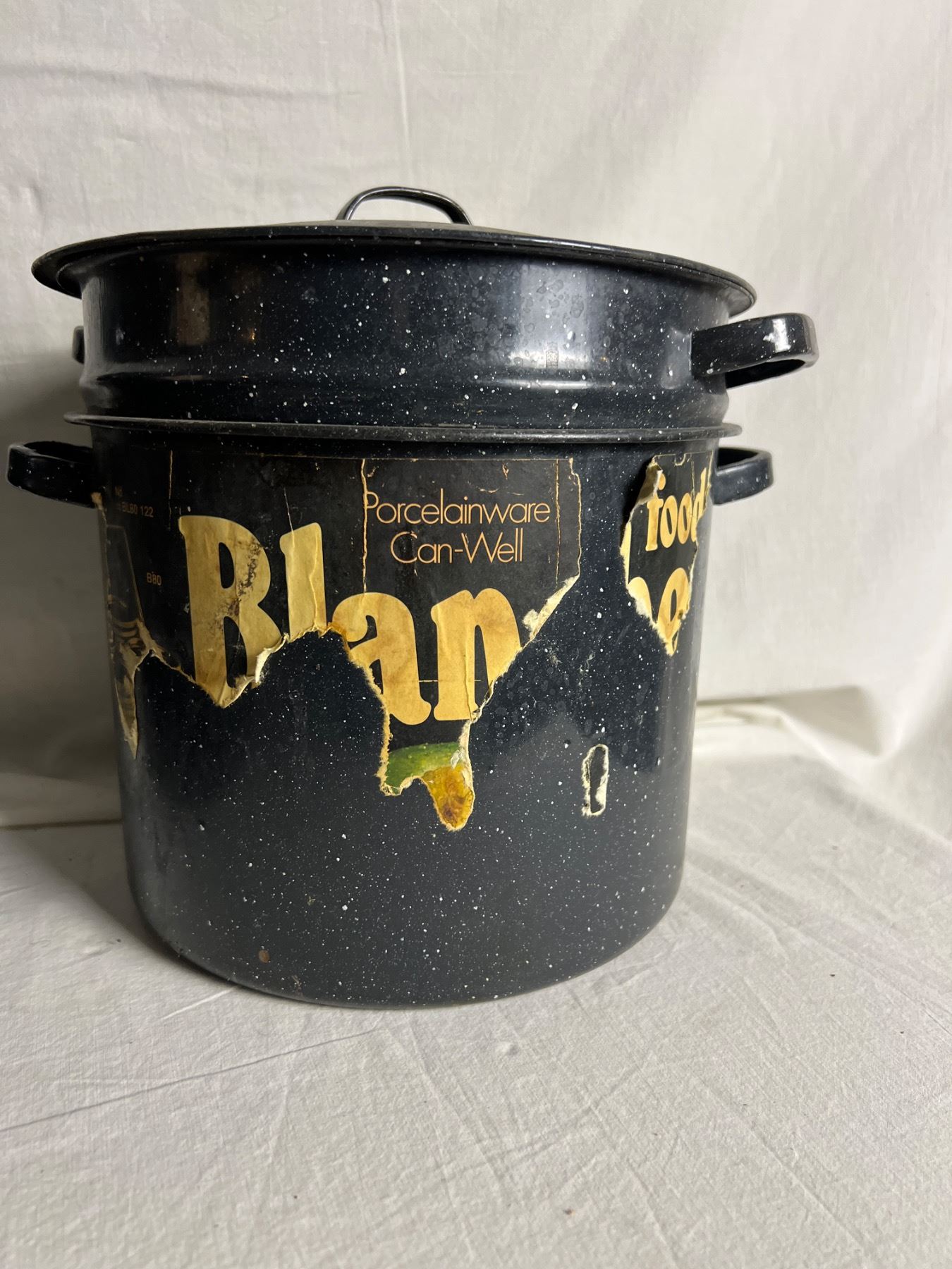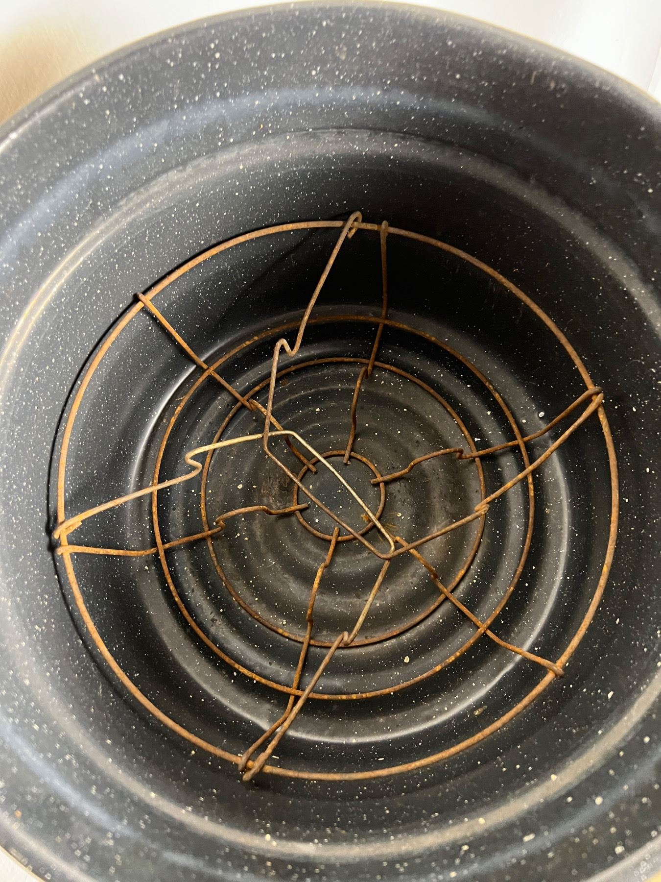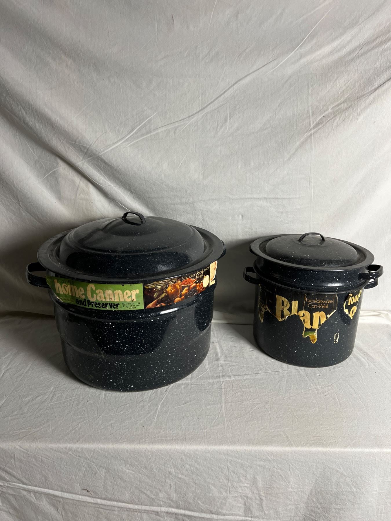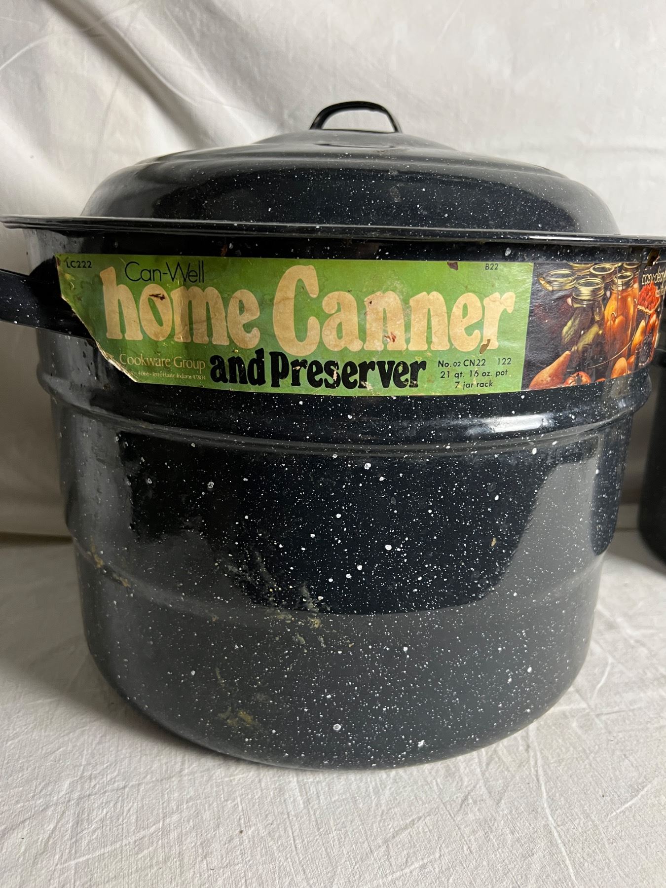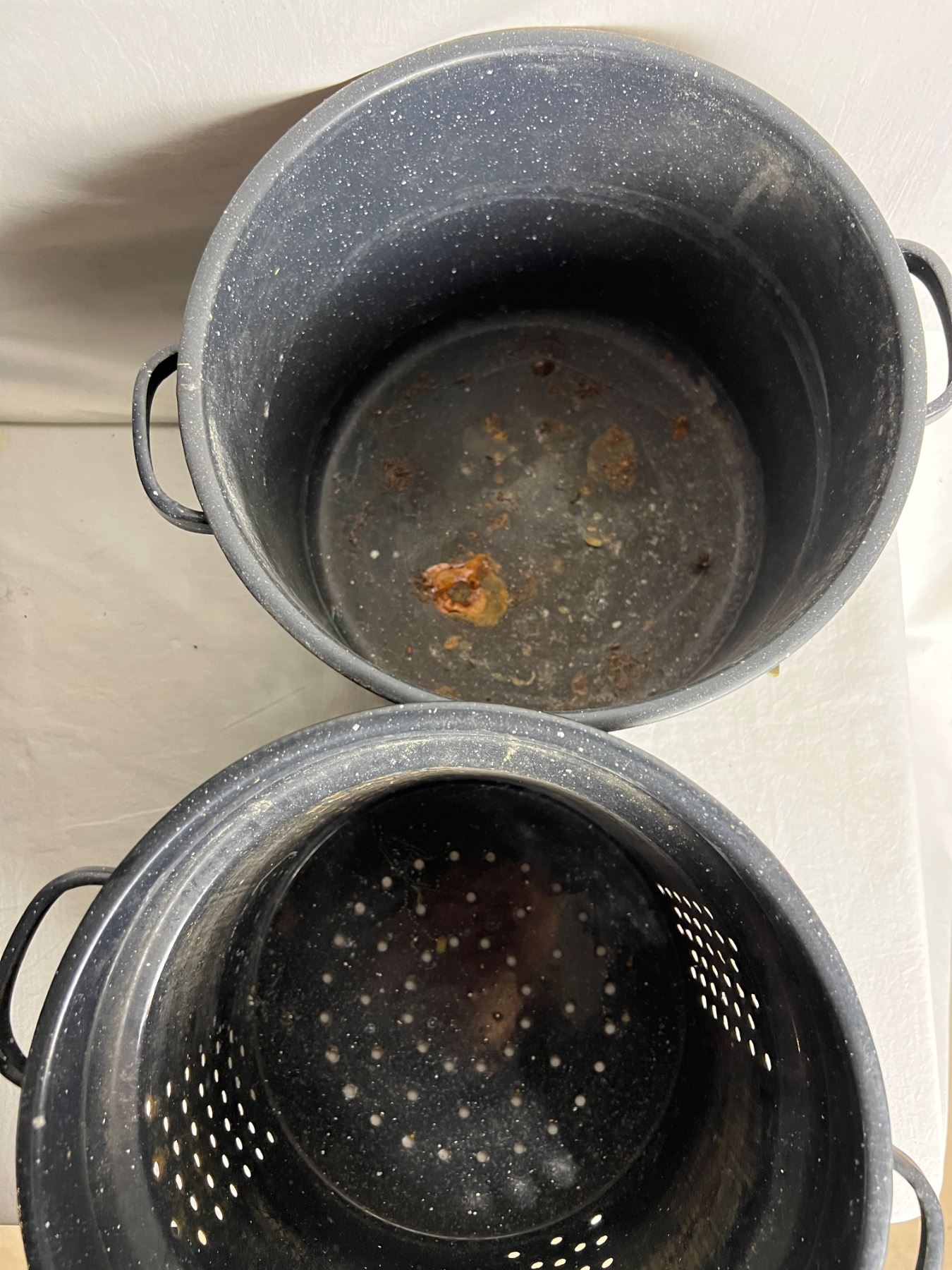 Larger pot is 21qt. Rust to bottom of smaller unit.