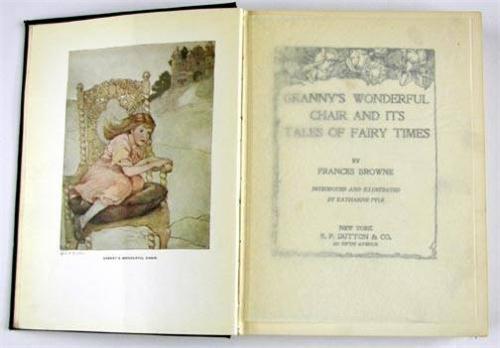 Granny's Wonderful Chair And Its Tales Of Fairy Times, by Frances Browne, illustrated by Katharine Pyle, published by E.P. Dutton & Co., of New York, 1916, from the Estate of Charles Ragland Bunnell, Condition: Good, spine is loose, "25c" & "Ray" witten inside, one illustration page detached and edges of it are damaged, no dust jacket