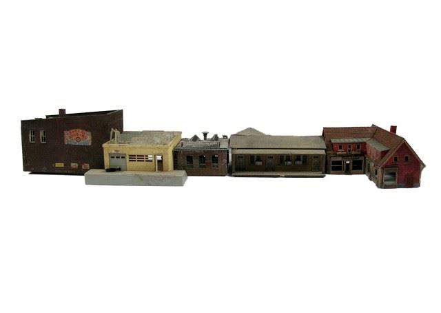 Designed and created by Grant McCune Design Studio is this very unique collection of unidentified collection of miniature buildings including five miniature buildings made of thin wood and plastic. (largest approx. 6 1/2" x 5 1/2"). These may have been featured in a movie, television show or commercial.