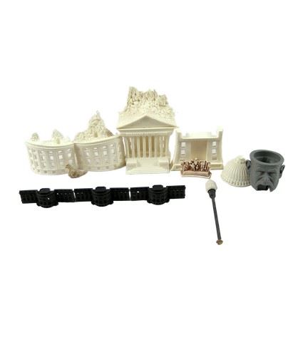 Designed and created by Grant McCune Design Studio are twelve assorted small miniatures including a Treasury Department model. This may have been featured in a movie, television show or commercial.(largest approx. 5 1/2" tall)
