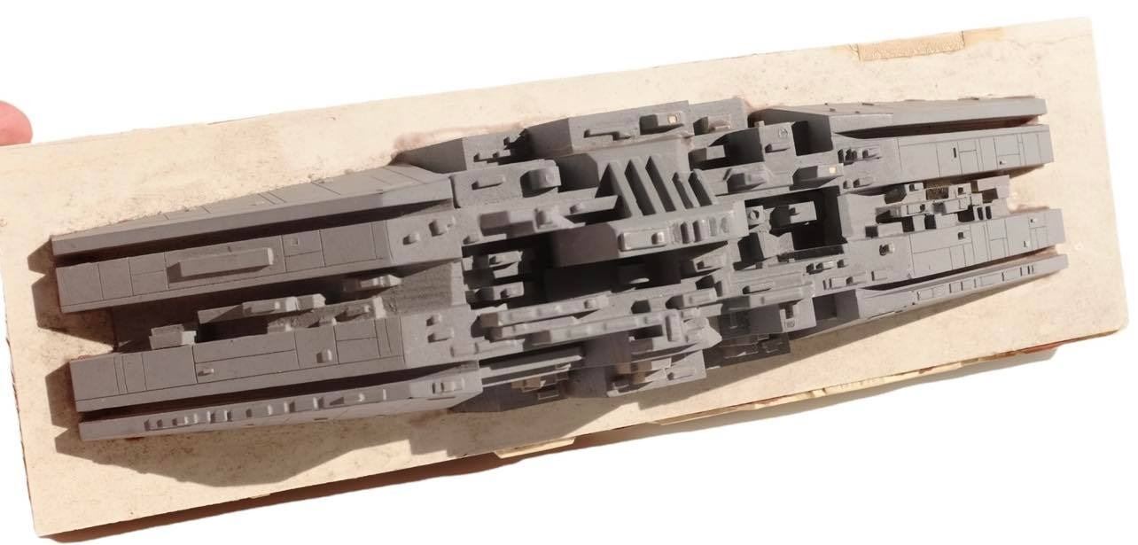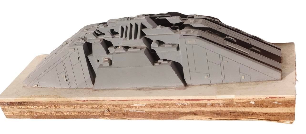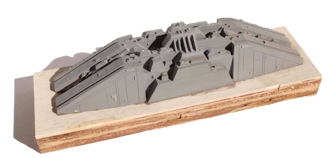 Original master mold for a piece of the Spaceball One starship used in the Mel Brooks directed space opera Star Wars parody film 'Spaceballs' (1987), primarily a parody of the original Star Wars trilogy, but also parodies other sci-fi films and popular franchises including Star Trek, Alien, The Wizard of Oz, 2001, and the Planet of the Apes.