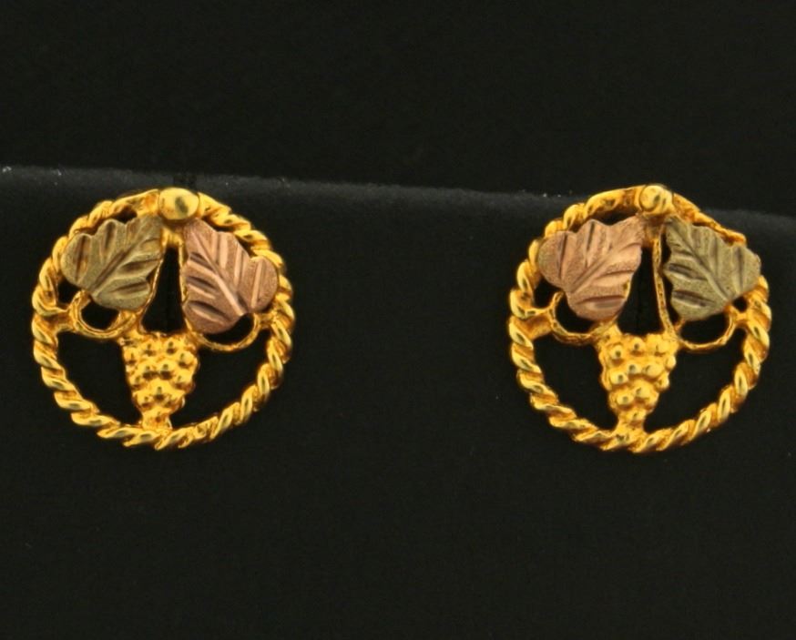 In 14k yellow, rose, and green gold. 1 inch long without backs. 1.5g.