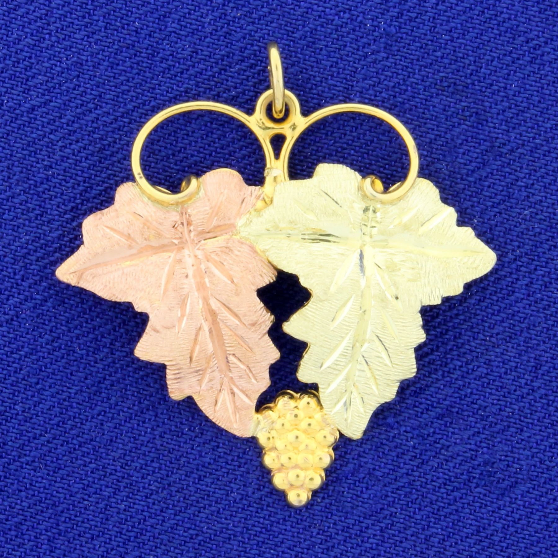 Grape Vine Pendant in 14k Yellow, Rose, and Green Gold