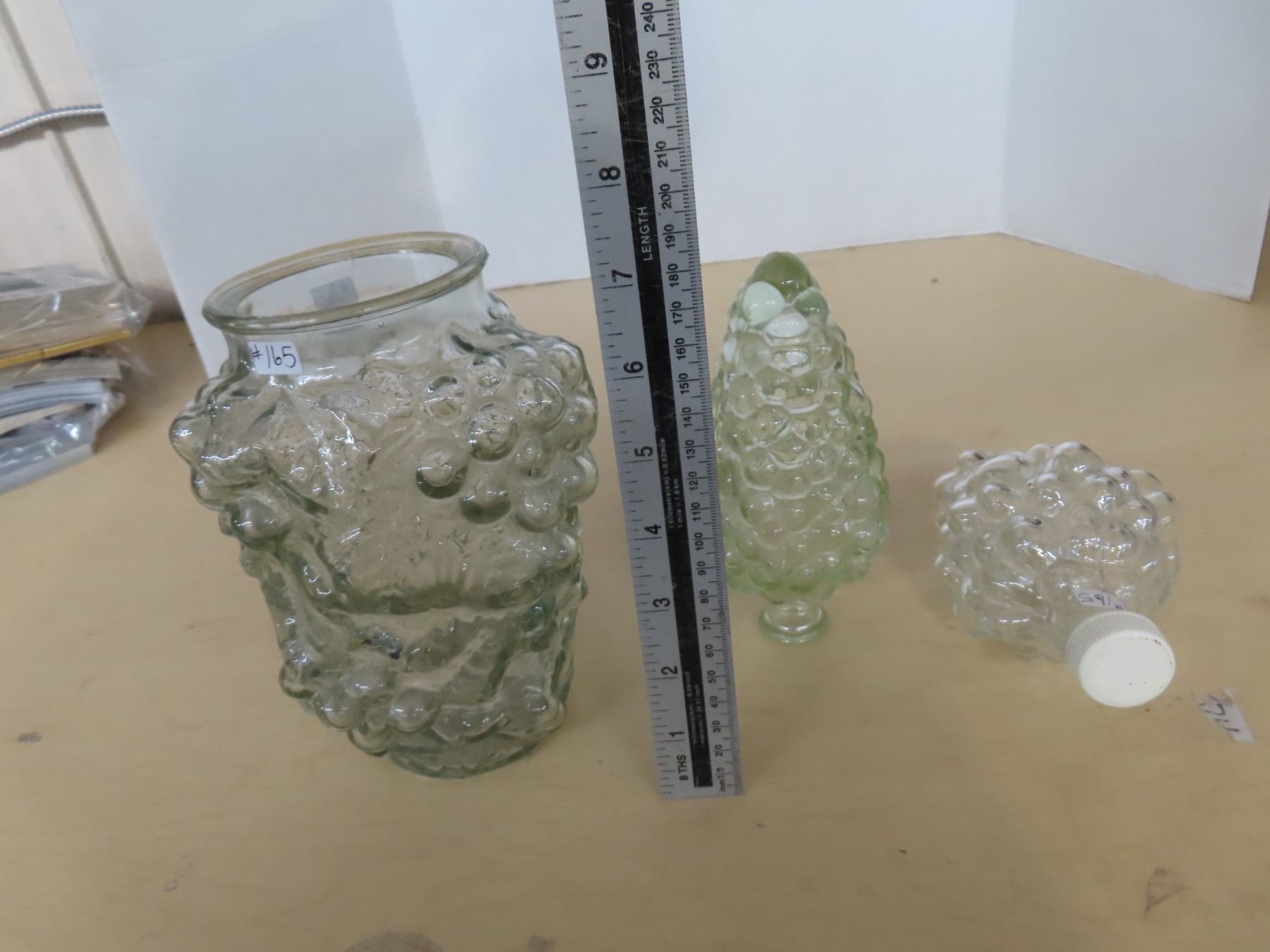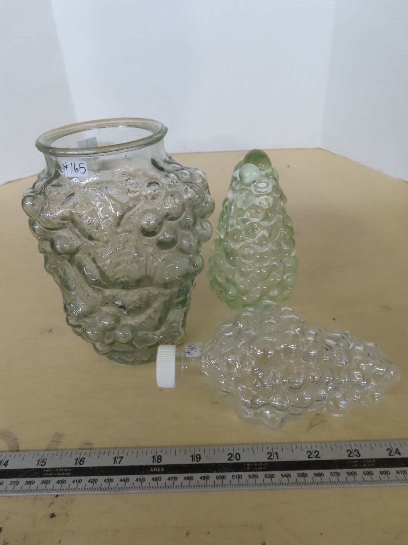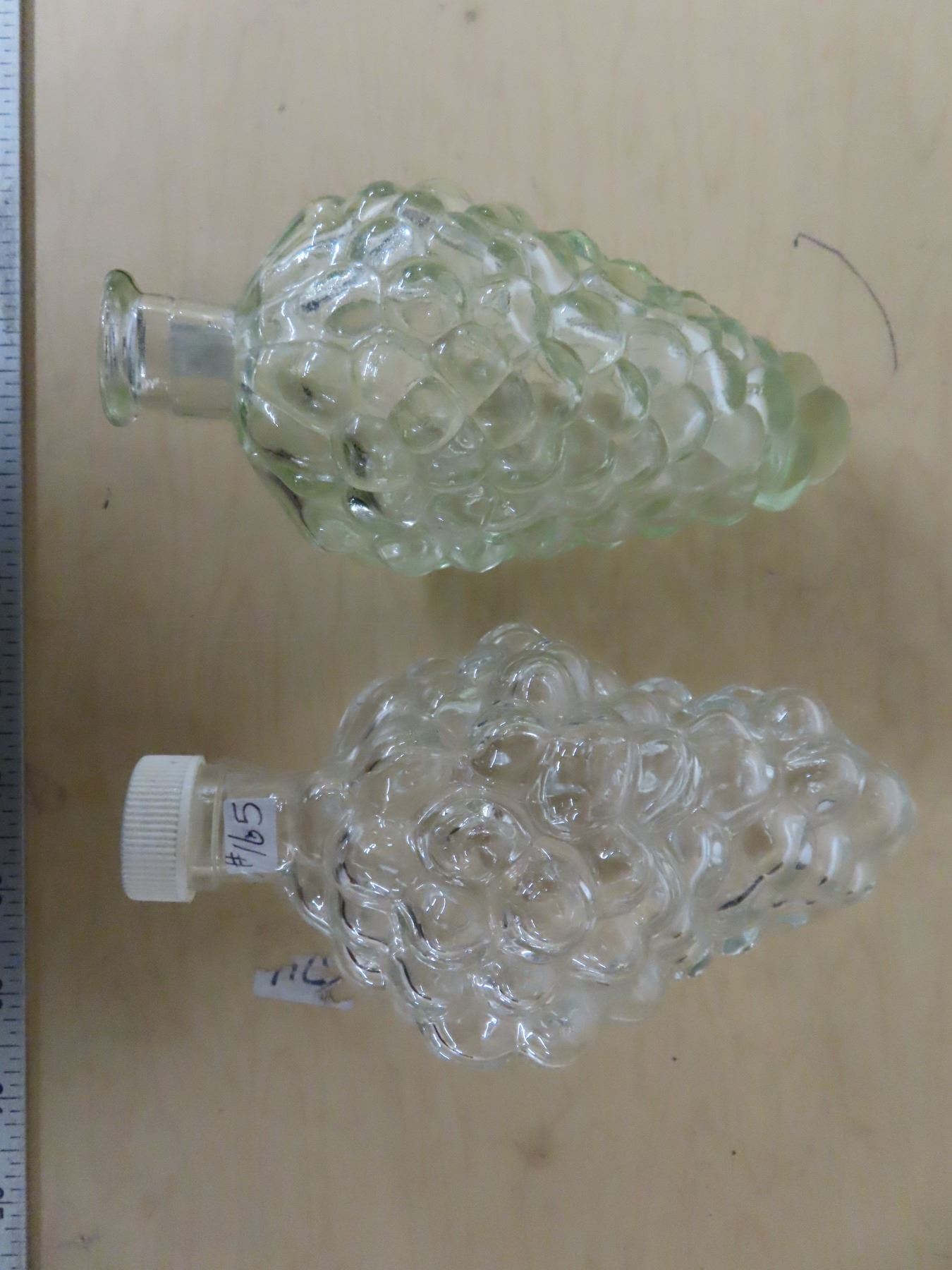 Grape figural bottles (2) mold blown grape vase, rough pontil