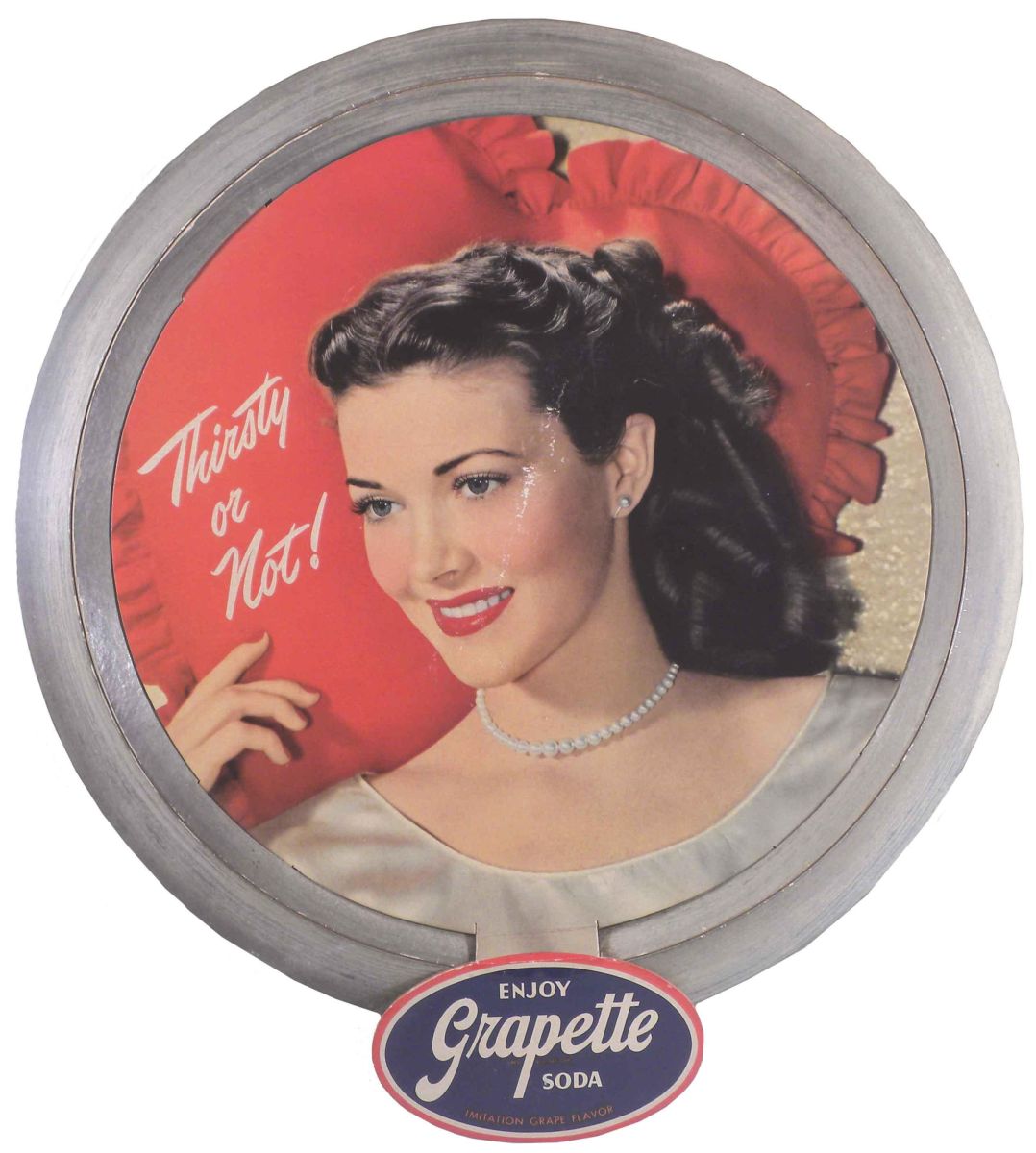 Grapette dimentional cardboard charger. Entitled, "Thirsty or not". Slight scrape across left cheek otherwise very good condition. 17 X 19 inches. Start Price $40