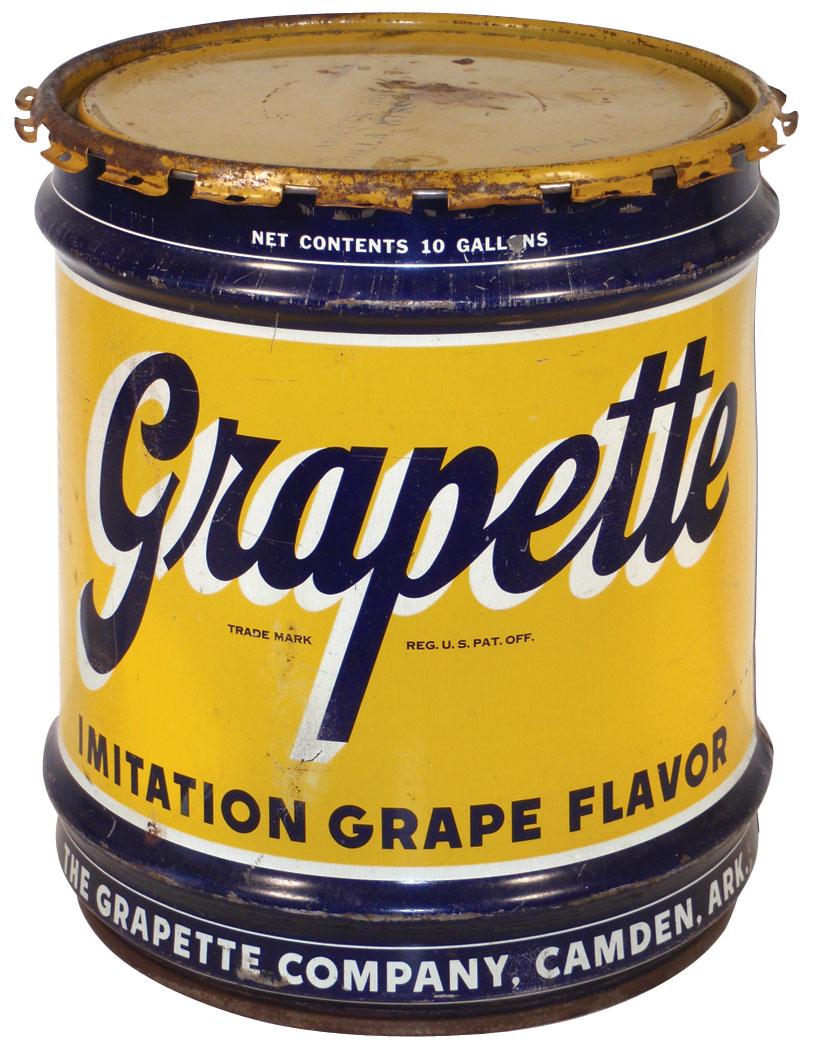 Grapette syrup drum w/lid from Rolla, MO, 5 gal, VG cond, 17"H x 16"Dia.