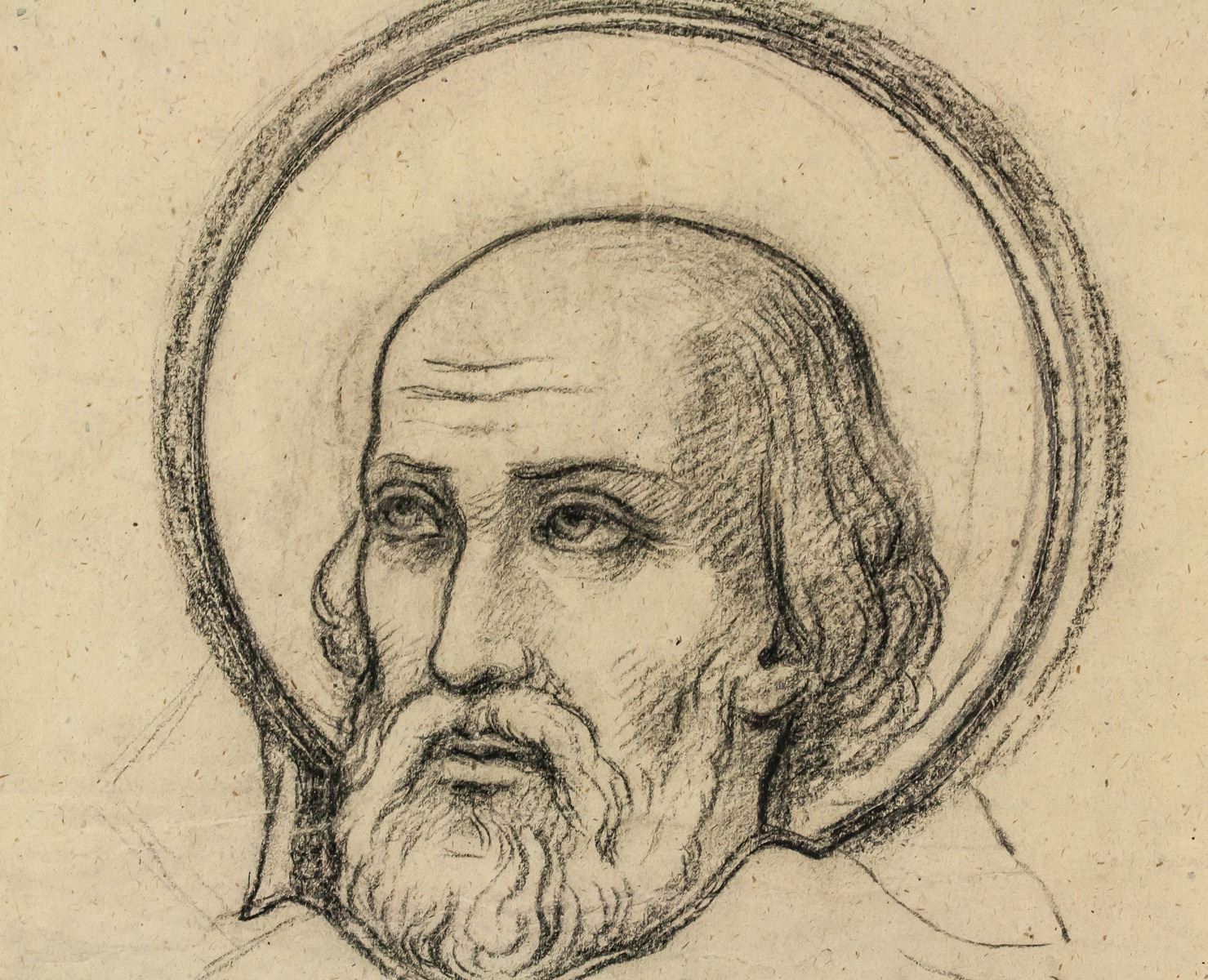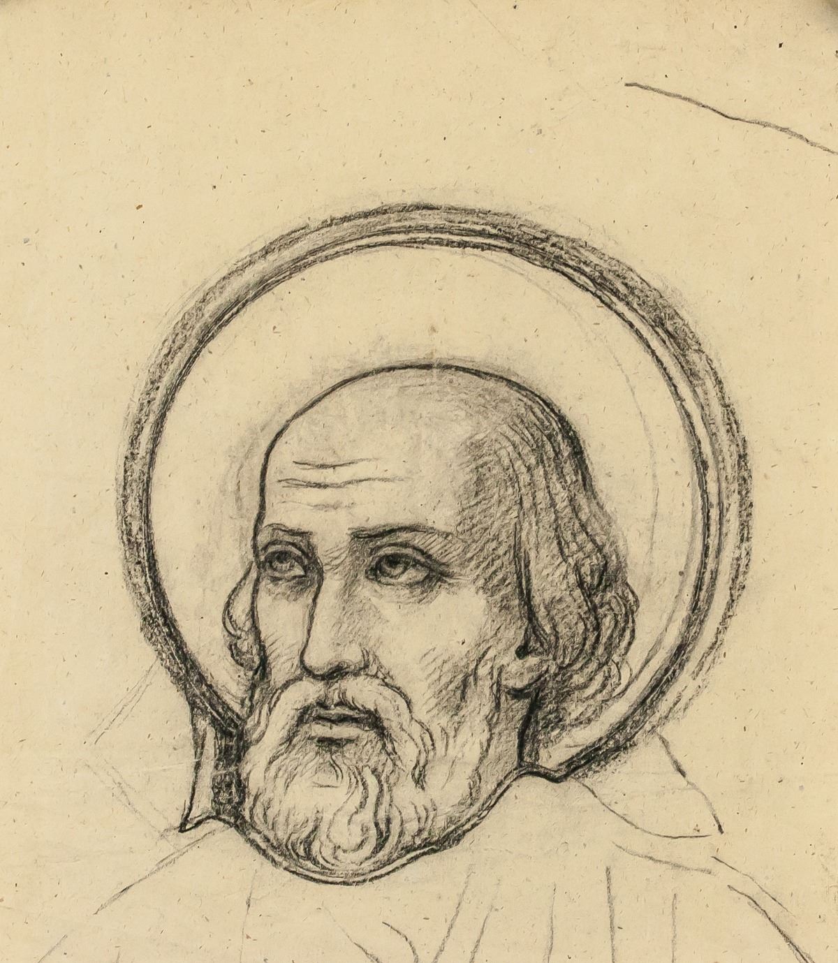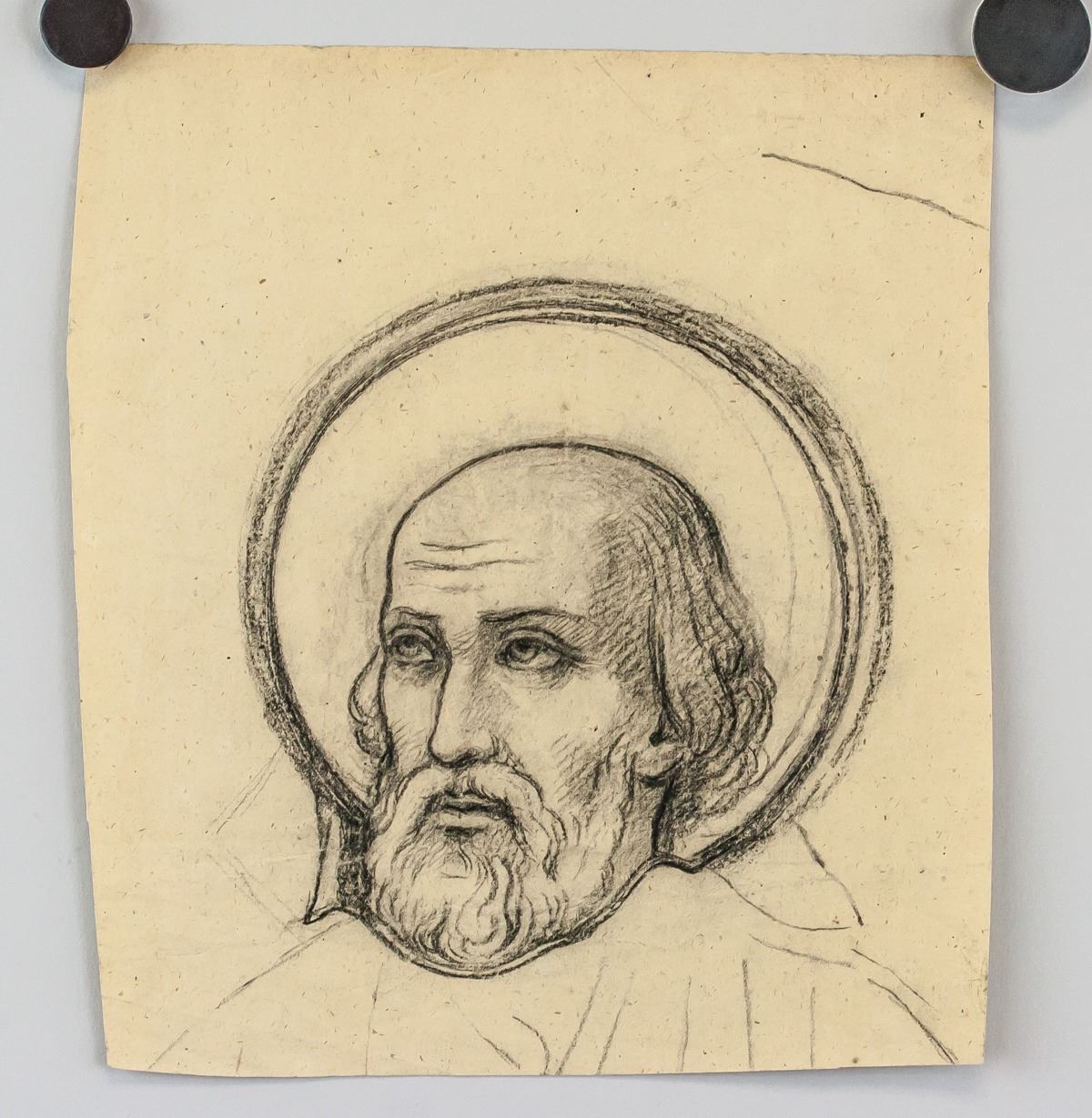 Graphite study sketch of St. Paul with halo. 21.5 x 19 cm (8.5 x 7.5 inches)