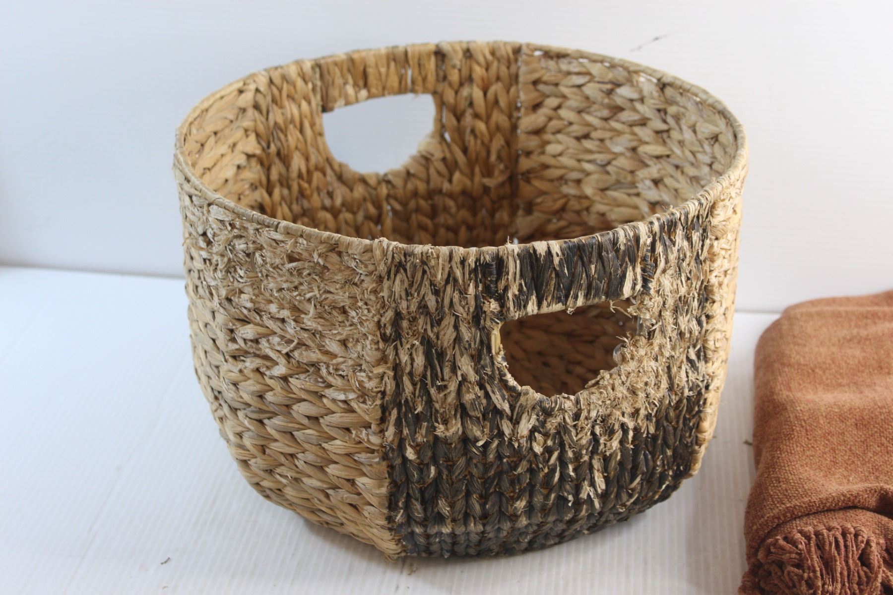 Grass Basket - Worn and a Throw Blanket