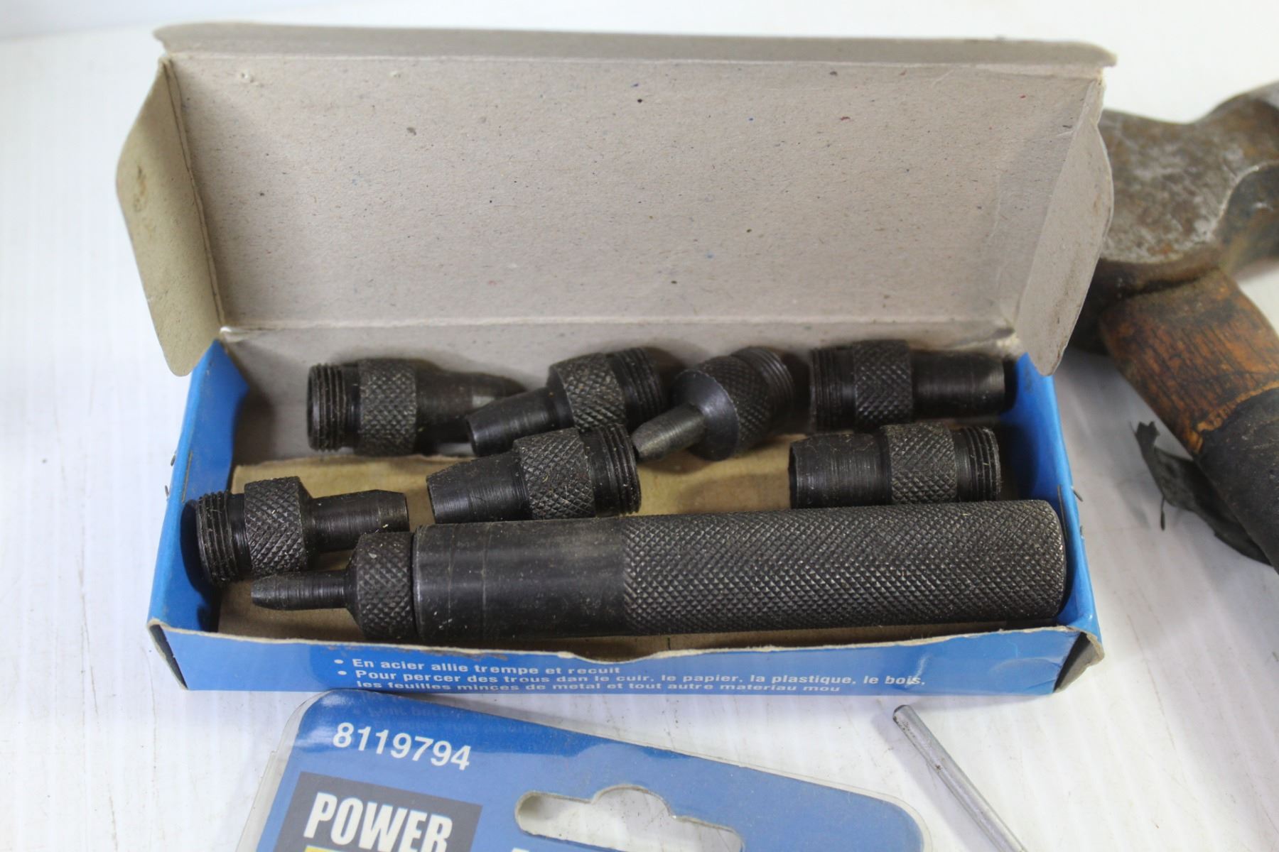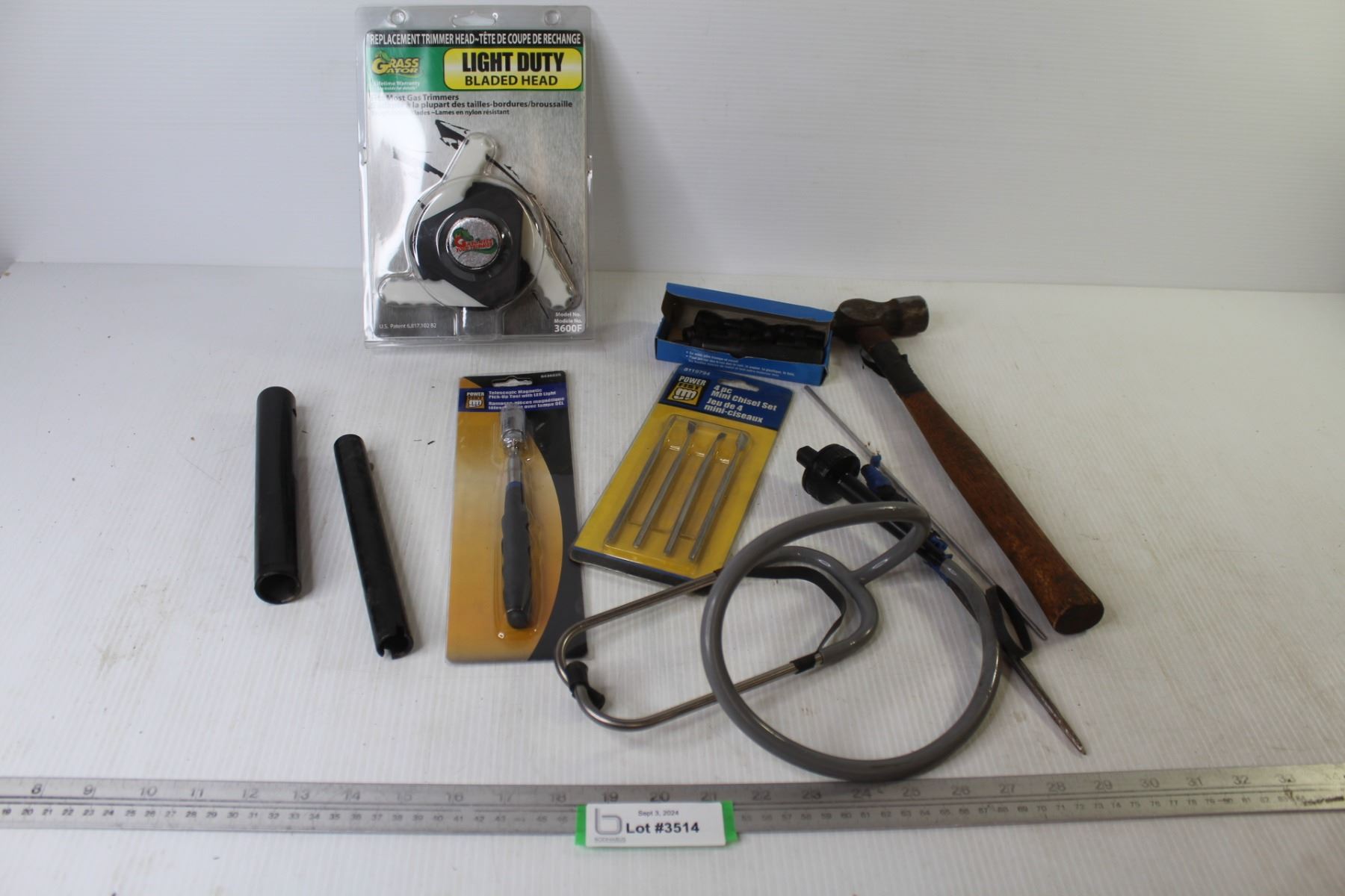 Grass Gator Blade (NIB) - (4) Piece Mini Chisel Set (NIB) - Telescopic Magnetic Tool - (9) Piece Hollow Punch Set - Ball Peen Hammer - Engine Stethoscope