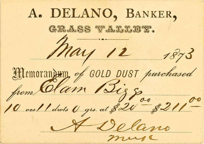 Grass Valley,CA - Nevada County - May 12, 1867 - Delano, A. Banker, Memorandum of Gold Dust Purchase